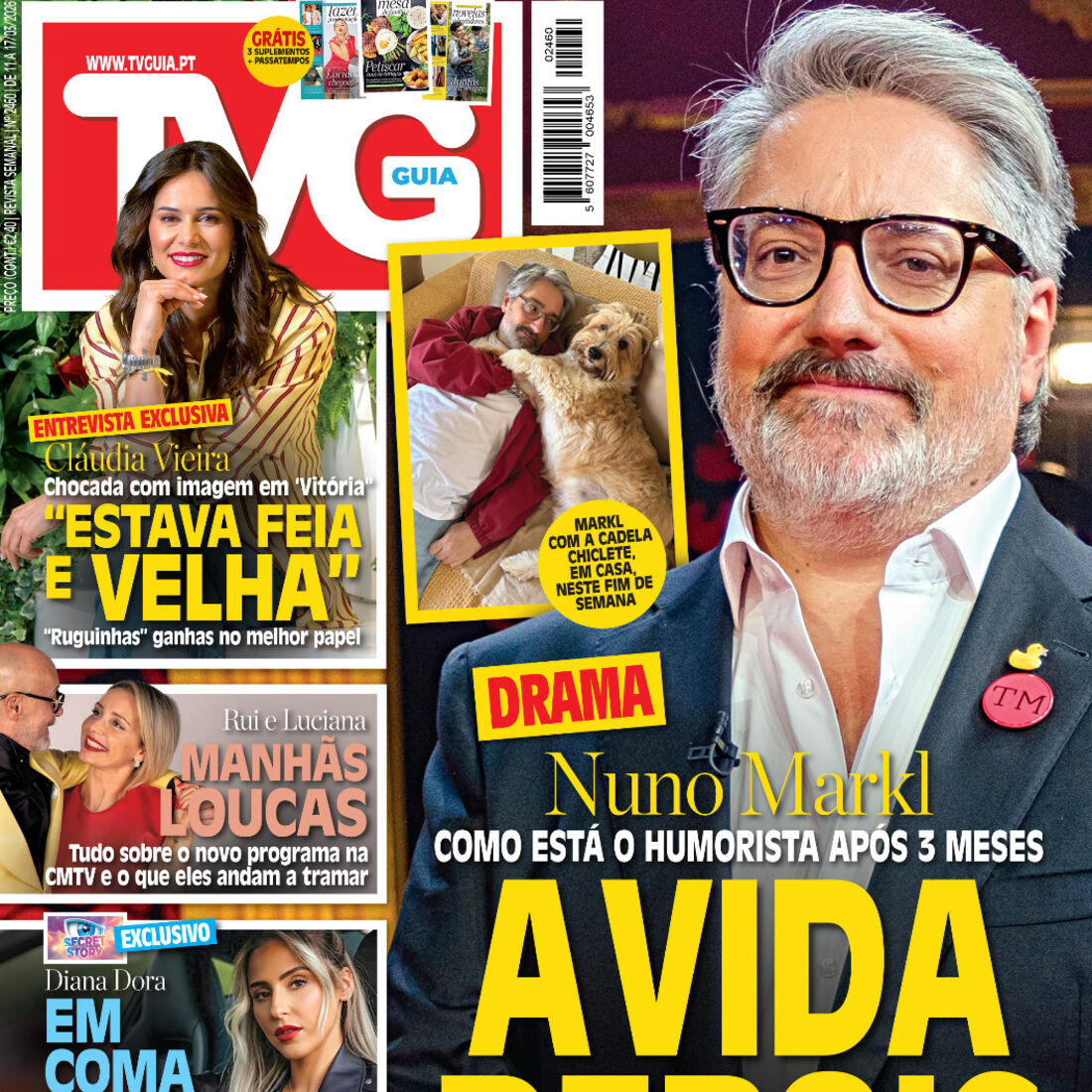 Já está nas bancas mais uma edição da revista TV Guia. Em semana de estreia da nova temporada do ‘Taskmaster’, revelamos-lhe como está a vida de Nuno Markl três meses depois de sofrer um AVC. Saiba todos os detalhes sobre o tratamento e as visitas a casa, as mulheres que nunca o deixam e como a sua cadela o tem ajudado.
