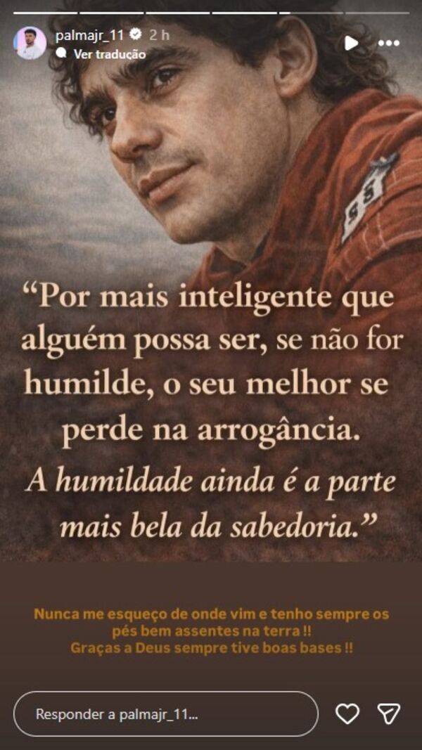 Sem querer pronunciar-se diretamente sobre o tema, o rapaz aproveitou para fazer uma partilha com uma indireta na rede social Instagram. Na imagem lê-se um texto sugestivo: "Por mais inteligente que alguém possa ser, se não for humilde, o seu melhor se perde na arrogância. A humildade ainda é a parte mais bela da sabedoria."