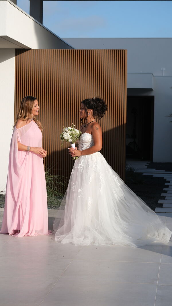 A ida até ao altar foi uma celebração do amor. A candidata começou por elogiar: "Estás tão bonito", ao que o noivo retribuiu: "Estás linda, princesa." Nos bastidores, o personal trainer prolongou as suas loas à companheira: "Ver a Rafaela vestida de noiva, aquela beleza deslumbrante, acho que me enche o coração."
