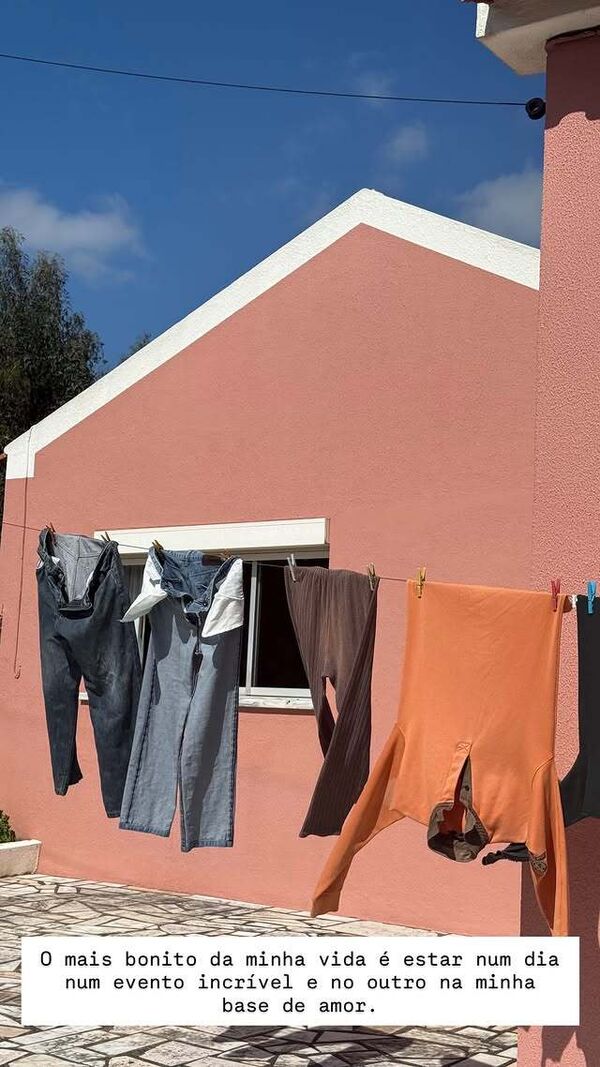 A caminhada na praia não faltou, para “agradecer”, revelou, seguindo-se, tudo indica, a avaliar pela descrição, uma visita à casa dos seus pais. “O mais bonito da minha vida é estar num dia num evento incrível e no outro na minha base de amor”, escreveu numa imagem onde se vê roupa estendida, junto a uma casa.