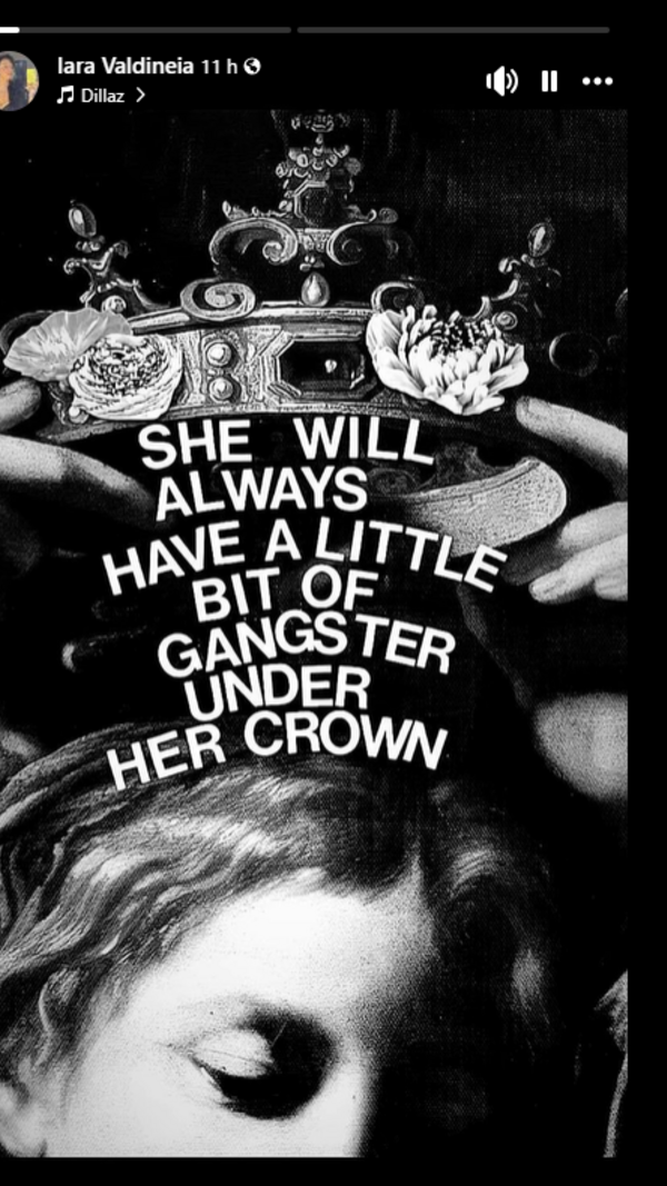 Pela hora de almoço, publicou um story com uma música de Dillaz em que surgia uma imagem e uma frase em inglês: “Ela sempre terá um bocado de gangster debaixo da sua coroa”. Já na madrugada deste sábado, 1 de novembro, deixou uma mensagem com uma indireta aos críticos: “Quem não gosta de mim, tem astigmatismo. Tem problema com brilho”, pode ler-se.