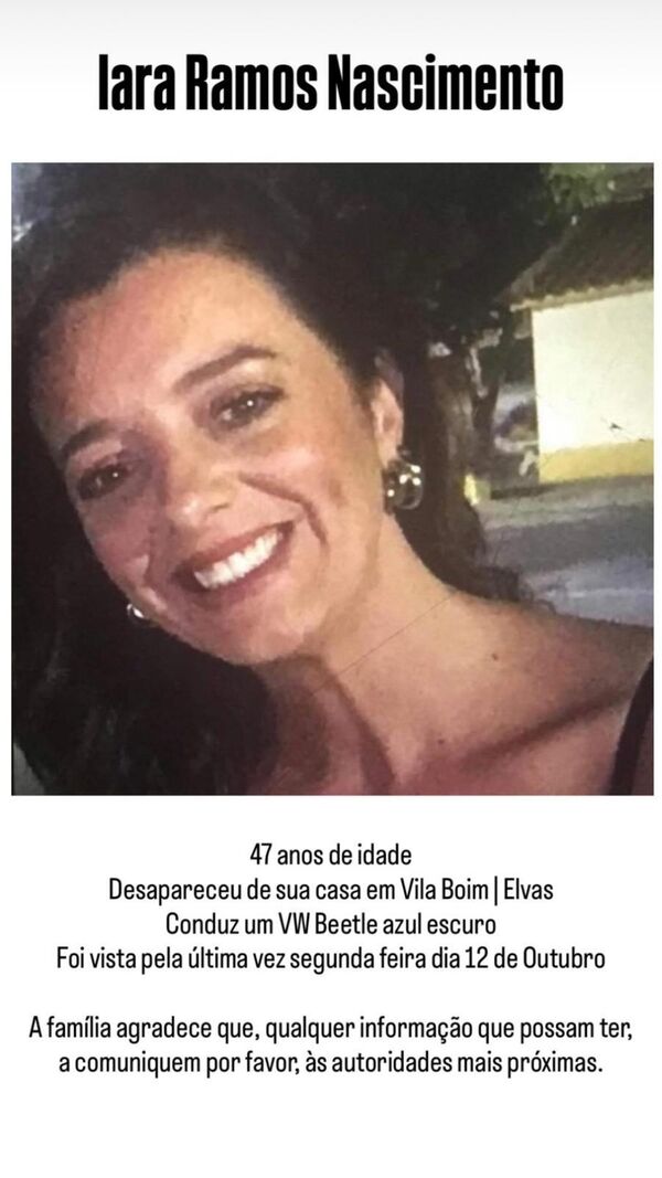 Cláudio Ramos vive dias de angústia. O apresentador da TVI partilhou na noite deste sábado, 19 de outubro, um apelo desesperado na rede social Instagram. É que Iara, uma das suas irmãs, está desaparecida desde segunda-feira, 13 de outubro. "Desapareceu em sua casa em Vila Boim, Elvas. Foi vista pela última vez na segunda-feira", pode ler-se. Iara Nascimento Ramos, de 47 anos de idade, conduzia um VW Beetle azul escuro quando foi vista pela última vez.
