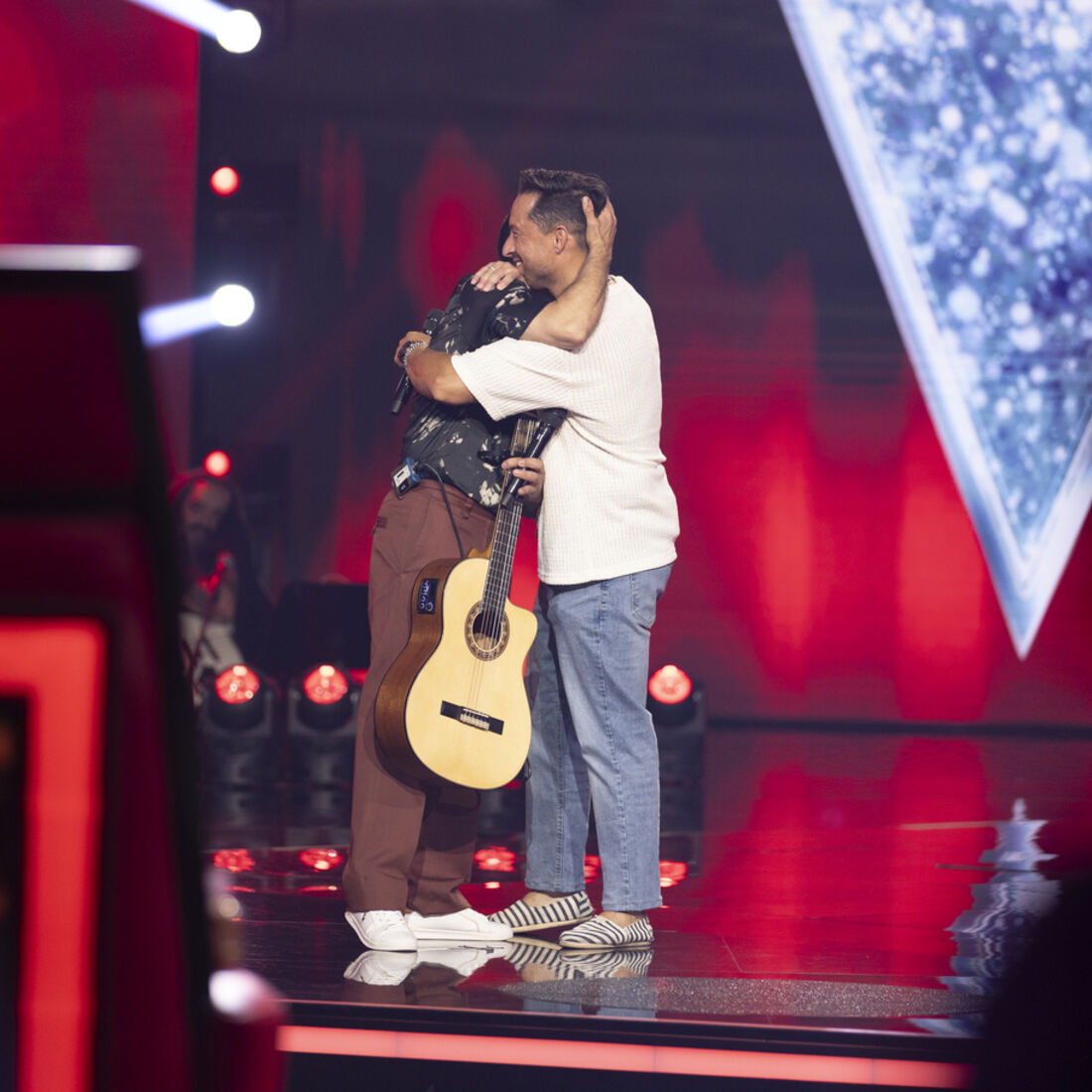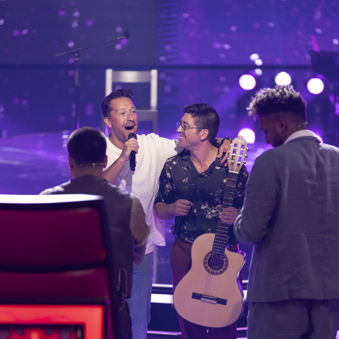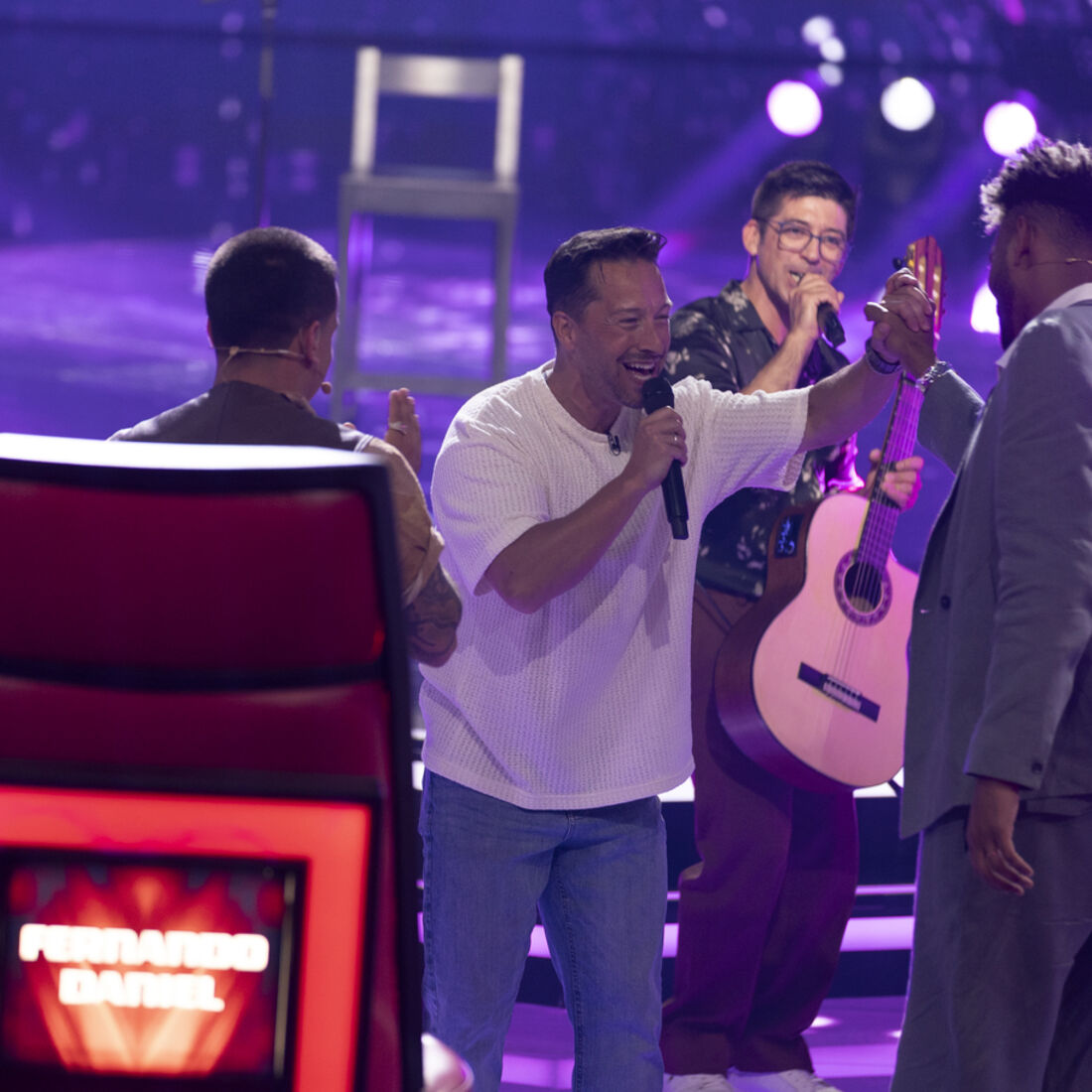 Apesar de ter dado nas vistas, o artista não conseguiu virar nenhuma cadeira. No entanto, foi surpreendido por Ricardo, que invadiu o palco para o abraçar e, juntos, voltaram a cantar a música ‘Hey’, um dos maiores êxitos da dupla.