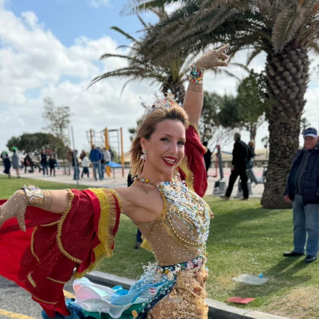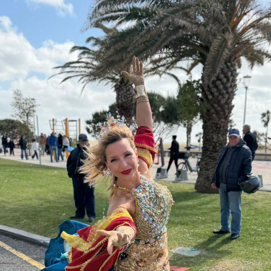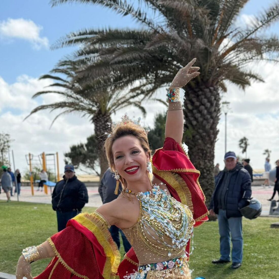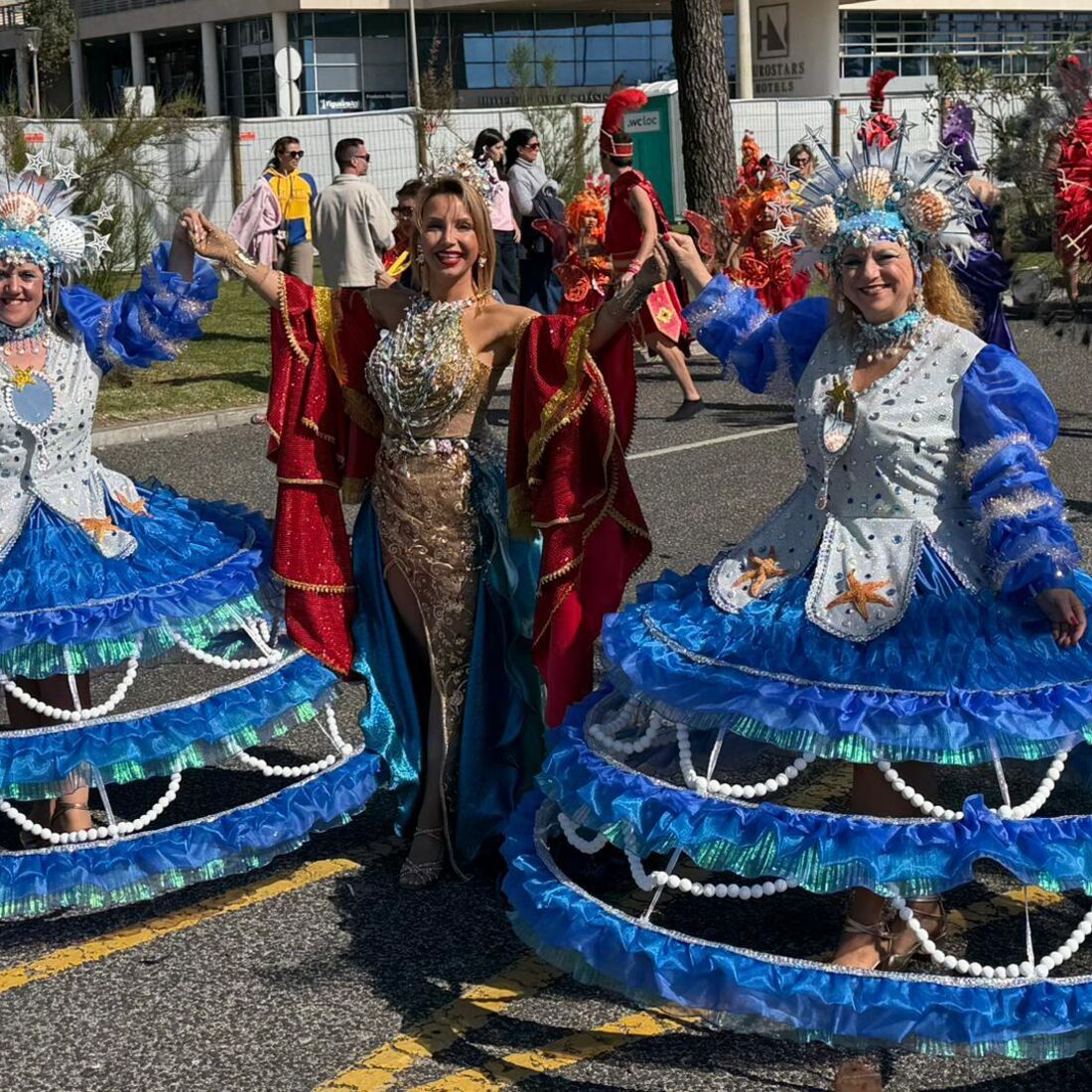 Vestida como uma verdadeira rainha, a apresentadora encantou todos aqueles com quem se cruzou tanto na noite de sábado, 11 de abril, como na tarde de domingo, 12 de abril. Para além de ter contactado com todos aqueles que a abordaram, ainda deu um passo de dança e sambou em plena avenida.