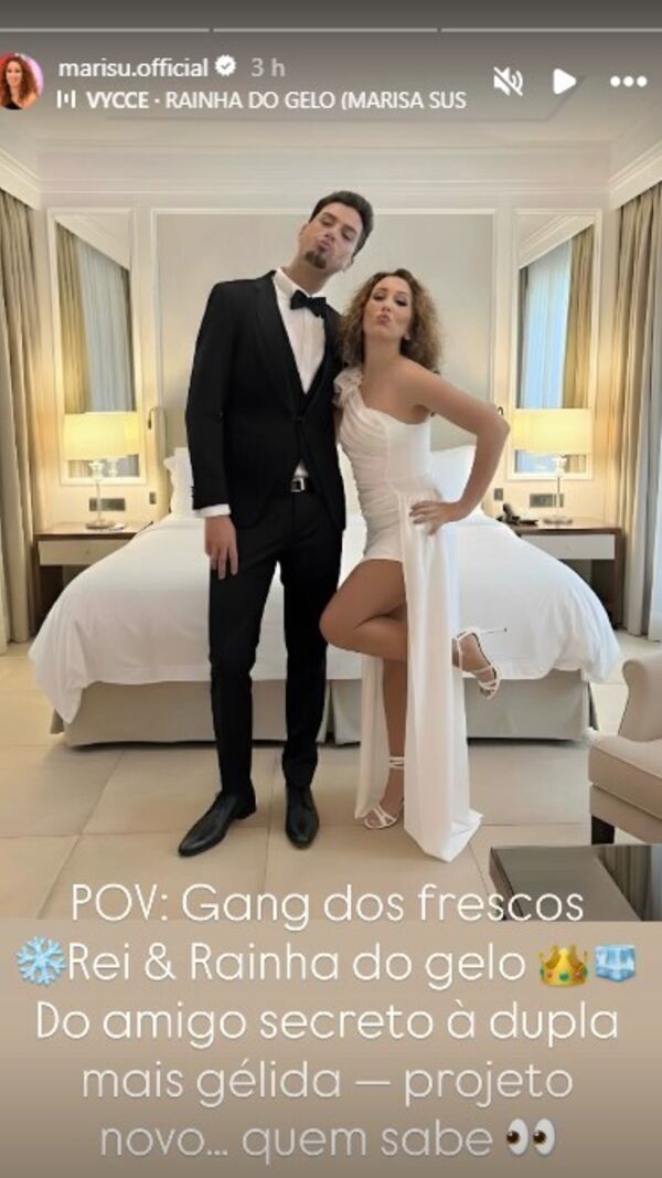Nesta segunda, dia 16 de fevereiro, Marisa Susana publicou uma 'story' no seu Instagram com Leandro Martins, acrescentando na descrição: "Ponto de vista: 'Gang dos Frescos'. Rei e rainha do gelo. Do amigo secreto à dupla mais gélida - projeto novo... quem sabe" Será que vem aí uma parceria entre Marisa Susana e Leandro ou terá este encontro servido apenas para enviar uma 'bicada' ao casal?