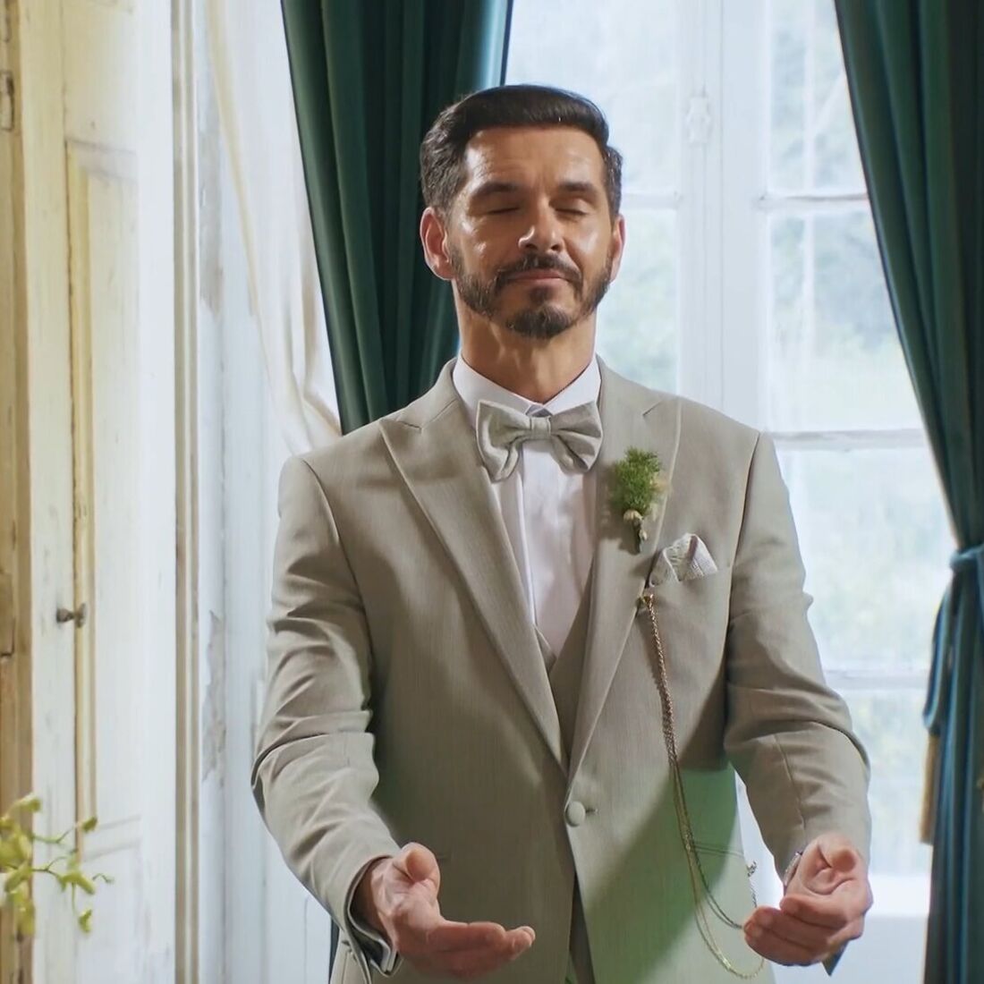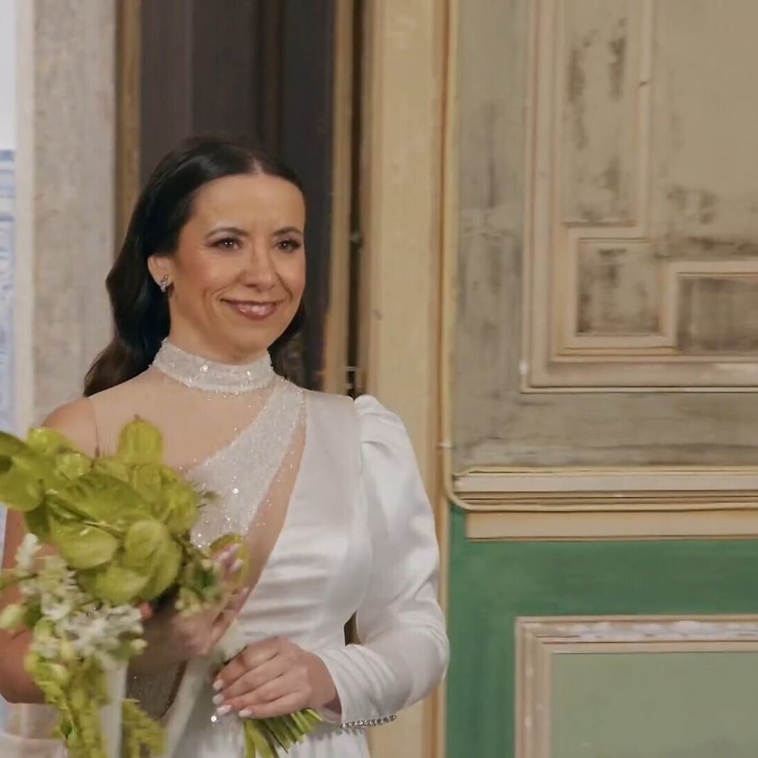 Ao contrário do esperado, o concorrente virou-se para receber a futura mulher... de olhos fechados. Optou antes por esticar as mãos e até a educadora de infância ficou confusa. “Quando o vi de braços abertos e com as mãos estendidas, fiquei confusa, achei que queria receber o buquê”, comentou, entre gargalhadas, acabando por explicar o que entendeu daquela atitude do marido. “Passou-me pela cabeça, acho que ele quer dar-me as mãos e acho que esse é um gesto muito simpático da parte dele, percebi o que ele pretendia com o dar as mãos, a união, foi bastante simbólico.”