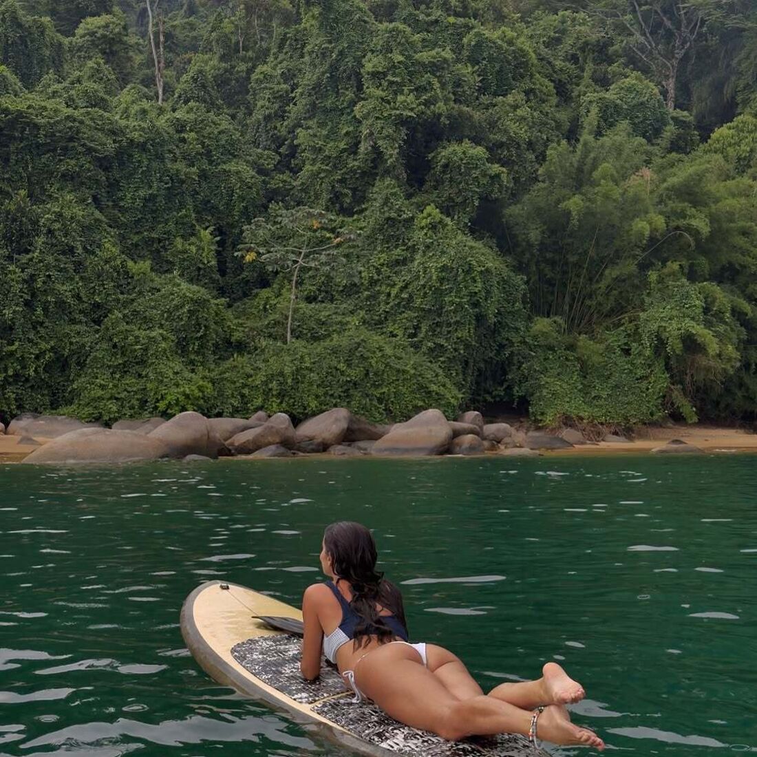 "E depois de dez horas de voo e mais três de carro, chegámos. Dia 1. Estávamos certos. Paraíso absolutamente estonteante. Angra dos Reis, Brasil.", esceveu a atriz na legenda de um vídeo que partilhou no seu Instagram.