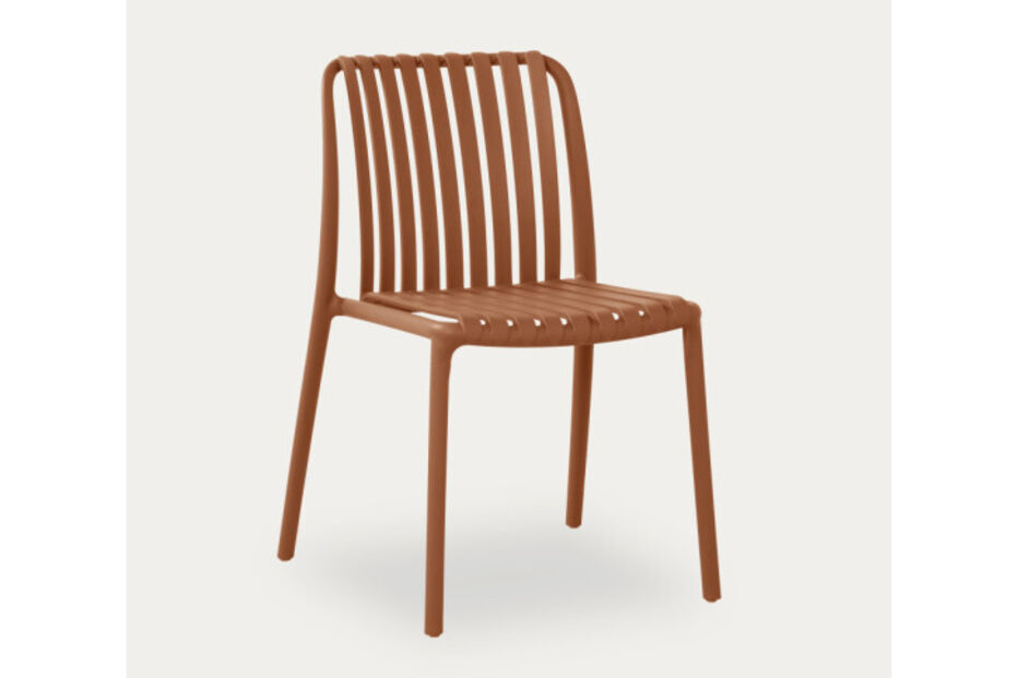 Para quem não tem medo de arriscar no estilo, a cor terracota da cadeira Arola é uma escolha audaz e calorosa. Com o seu design contemporâneo de linhas curvas, não só garante uma ventilação perfeita para os dias mais quentes, como é feita num polipropileno ultra leve, ideal para quem gosta de brincar com a disposição do mobiliário com grande facilidade.