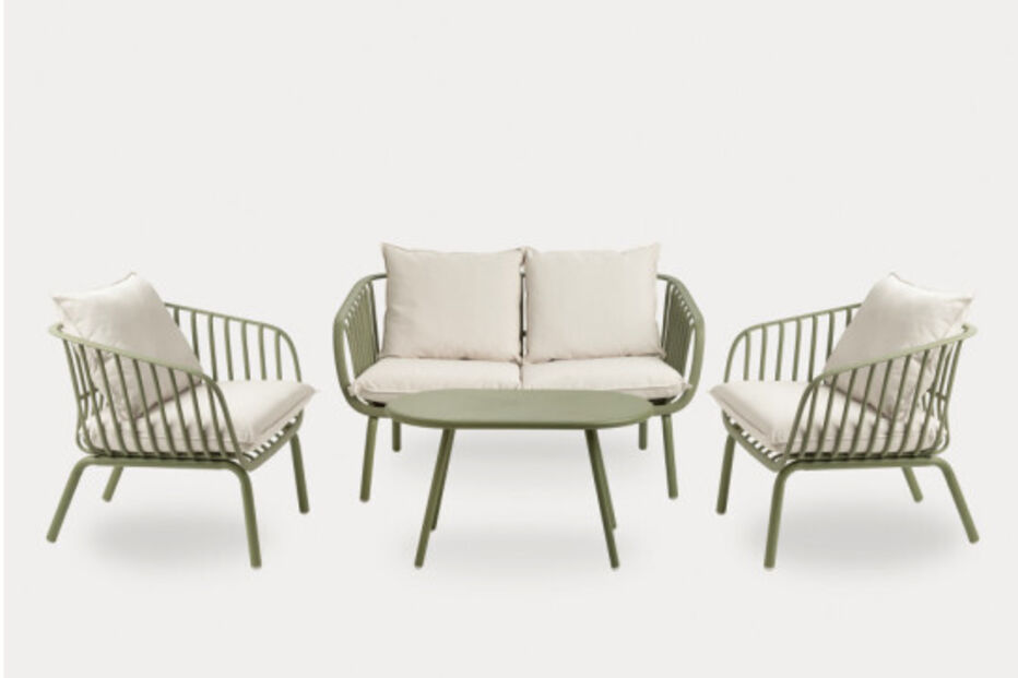 Ver preçoMas se o objetivo é criar o cenário ideal para fins de tarde inesquecíveis em família ou com amigos, o conjunto Madeira é a escolha ideal. Num sereno tom verde pastel, este conjunto, que inclui sofá duplo, poltronas individuais e mesa de centro, traz a frescura e o equilíbrio que irá transformar qualquer jardim ou terraço. Com almofadas confortáveis em tons naturais, é o convite final para se sentar, relaxar e deixar-se envolver pela nova estação.