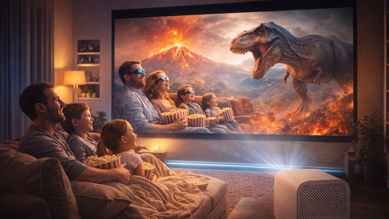 Com um design minimalista e ultraportátil, este projetor abandona o conceito dos dispositivos pesados do passado. Ocupa pouco espaço e funde-se com a decoração, permitindo projetar um ecrã gigante de até 120 polegadas em qualidade Full HD. Graças à tecnologia de reflexão difusa, a visualização é muito mais confortável para os olhos do que numa televisão convencional, ideal para maratonas noturnas sem fadiga.