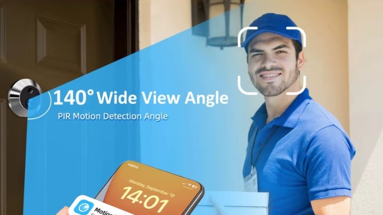 À primeira vista, parece apenas um olho mágico tradicional. Na prática, é um visor digital com câmara de 3MP, ecrã LCD de 4,3 polegadas no interior e ligação Wi-Fi (2,4 GHz), controlado através da aplicação iCam365. A partir do telemóvel, é possível ver em direto quem está à porta e ouvir o que diz, esteja o utilizador em casa, no trabalho ou em viagem.