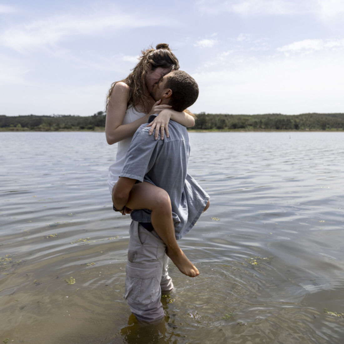 No rio, a rapariga, com o frasco com tinta vermelha na mão, pensa tensa se segue as indicações da sogra, mas, quando o marido se aproxima e grita que a quer compensar por não estar a ser o marido ideal, ela desarma.