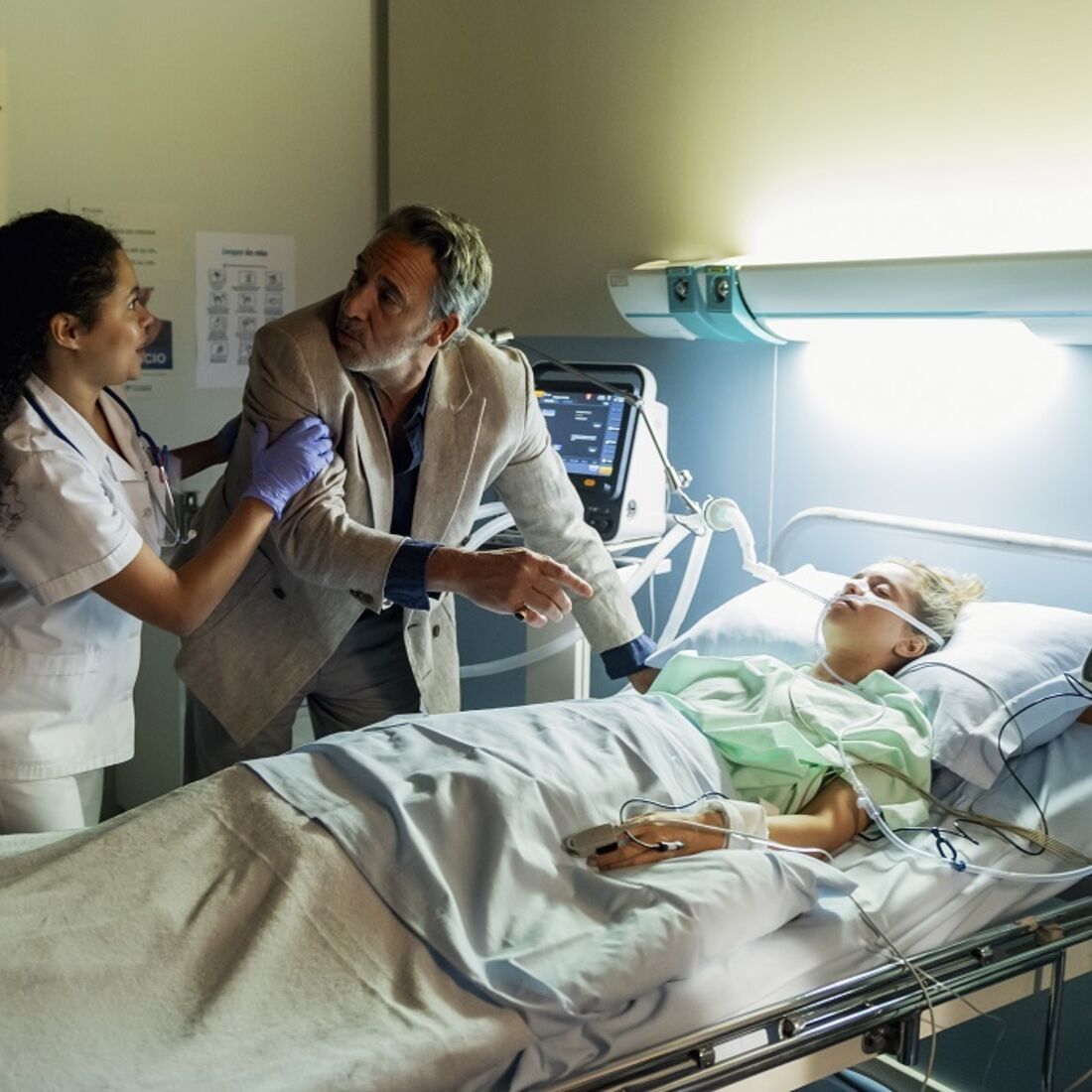 Durante a cirurgia, o médico troca um olhar de pânico com Nadir (Sharam Diniz), que também tem medo do que possa vir a acontecer. Horas depois, Talu consegue estar com a amada e incentiva-a a recuperar rápido, por ser uma lutadora.