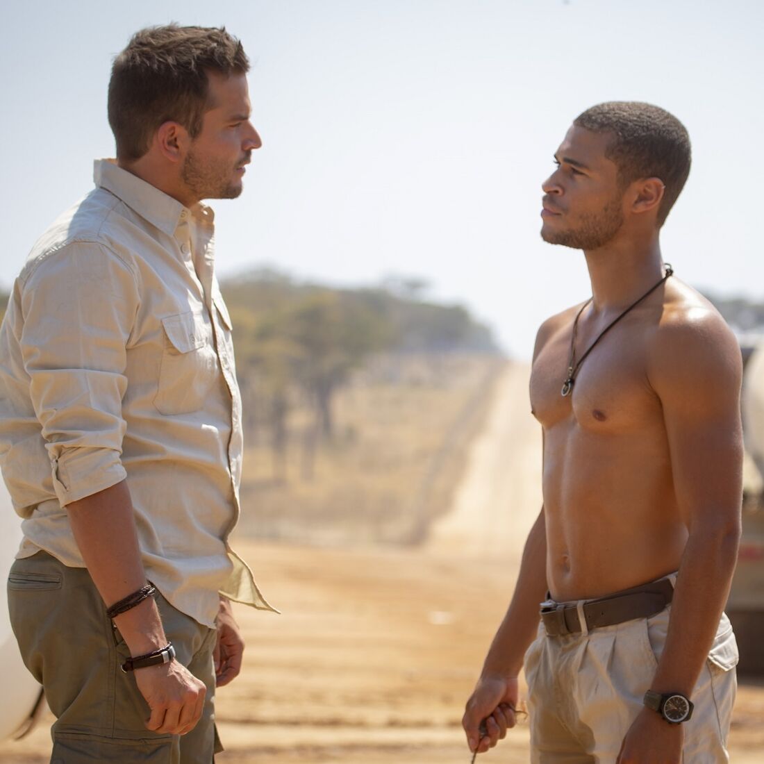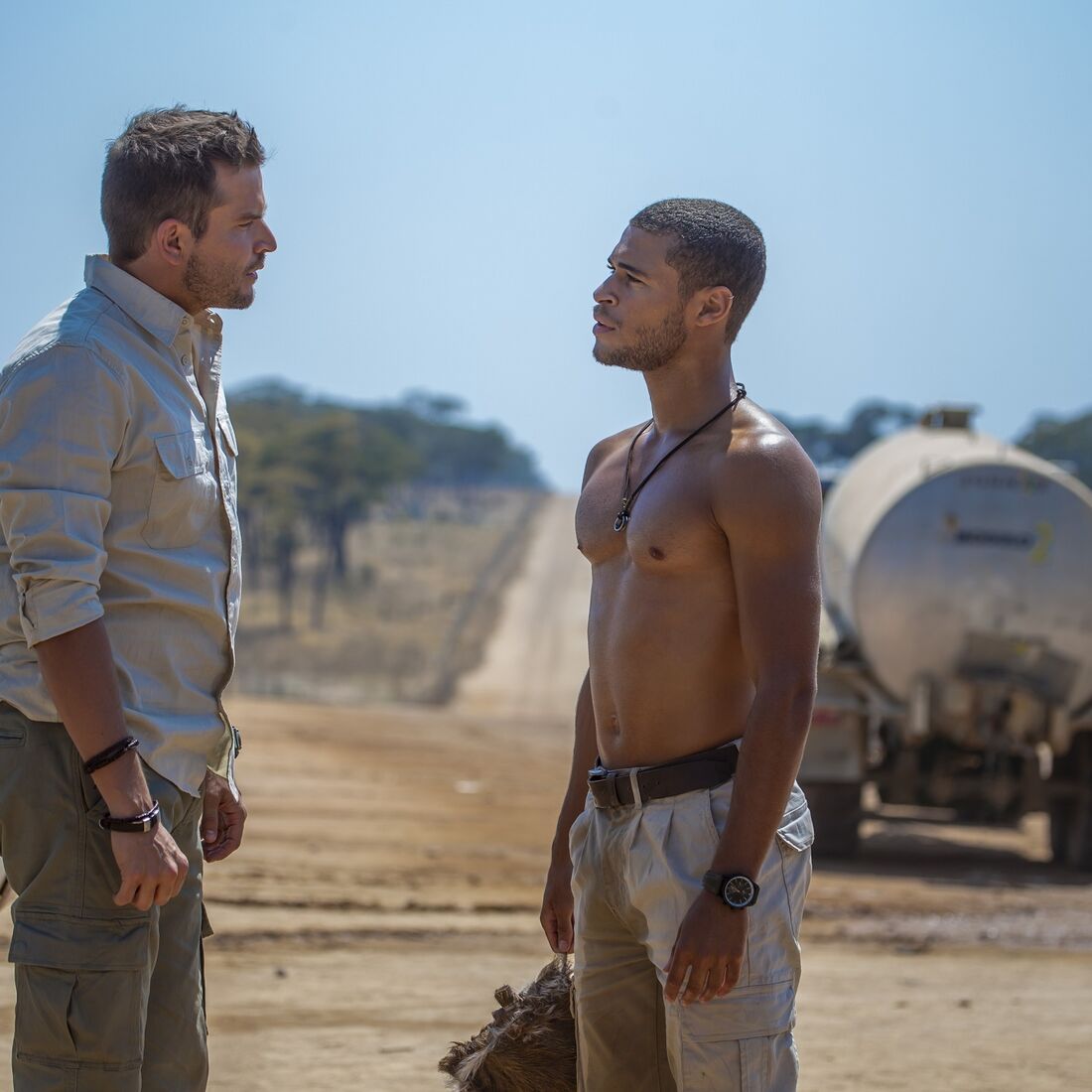 Os dois começam a discutir e o namorado de Zuri (Madalena Aragão) acusa o guia turístico de o ter deixado para morrer no meio do incêndio, culpando-o pelo estado da veterinária.