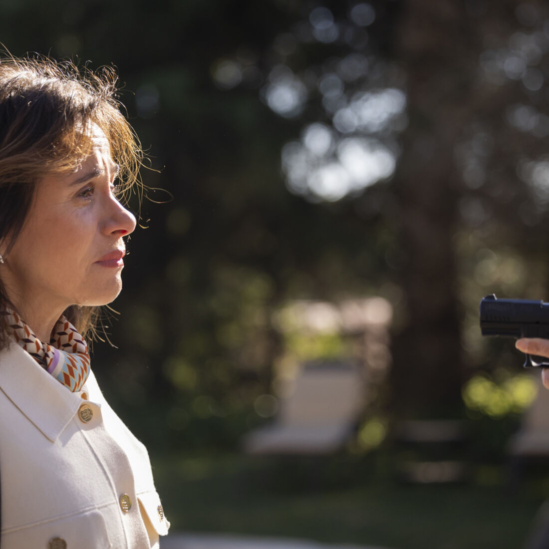 Em seguida, Alba recorda, abalada, a morte da filha, questionando a irmã pelo motivo para a ter levado até ali. Leonor diz à irmã que nunca esqueceu o que aconteceu e aponta-lhe uma arma. Em seguida, entrega-a a Alba para que esta decida se a mata ou a perdoa. Alba aponta de surpresa a arma à sua própria cabeça e alega não querer fazer mal a mais ninguém.