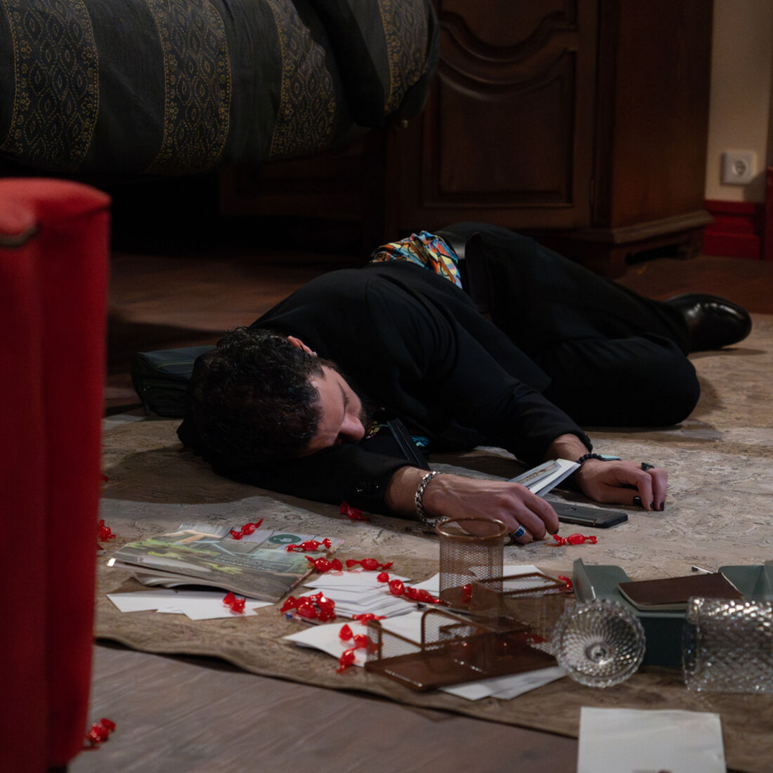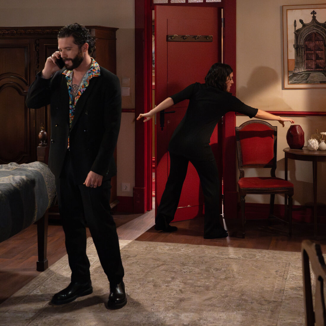Ao entrar no quarto, o mafioso está ao telefone com Sofia, dizendo-lhe que têm uma coisa importante para falar. Mas, de repente, a amiga de Inês (Dânia Neto) entra e desfere-lhe um golpe na cabeça, deixando-o inconsciente. Sofia deixa de ouvir a chamada.