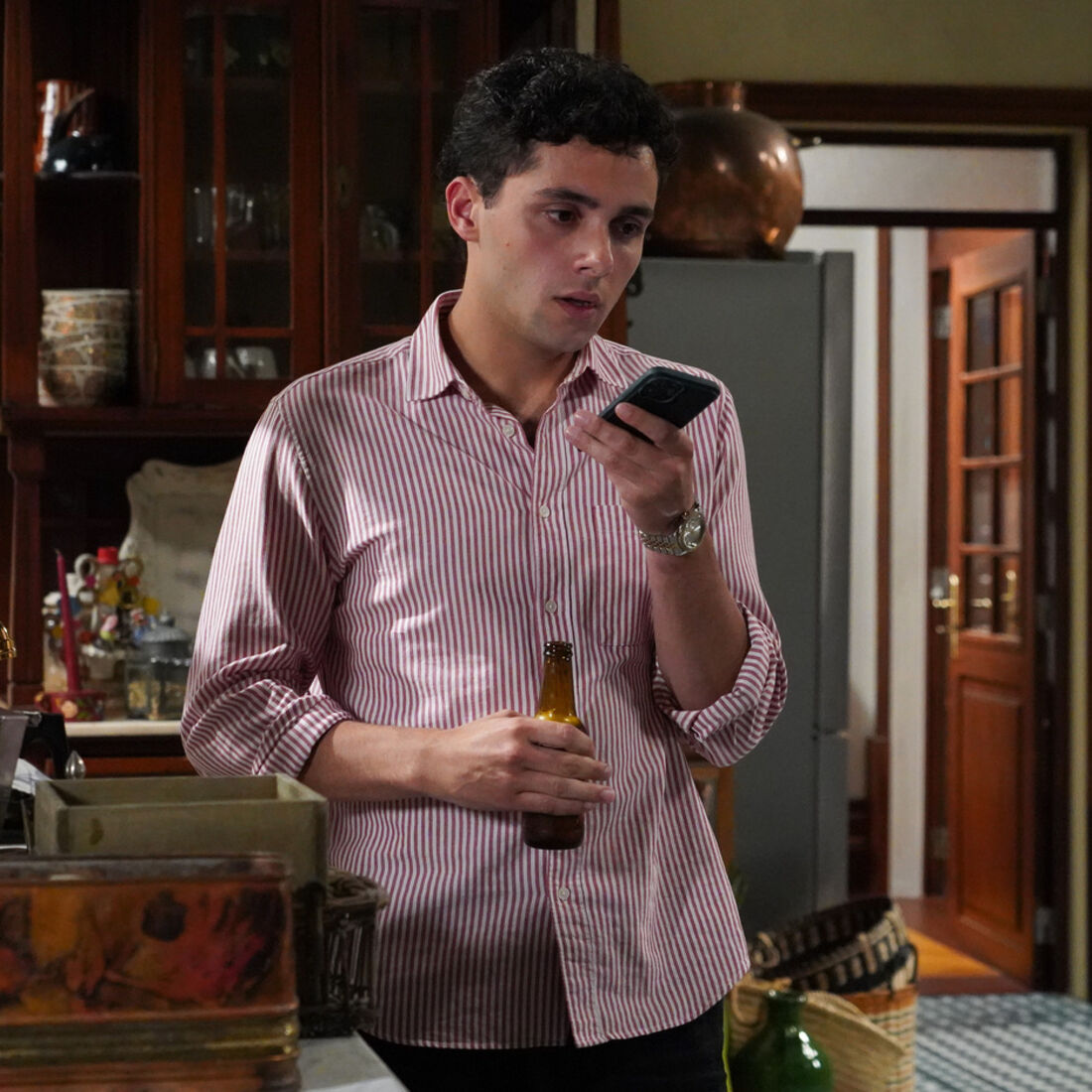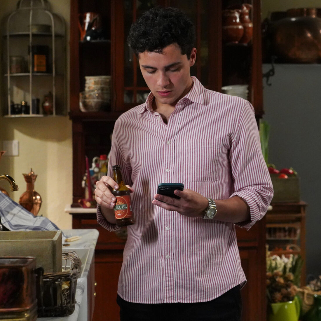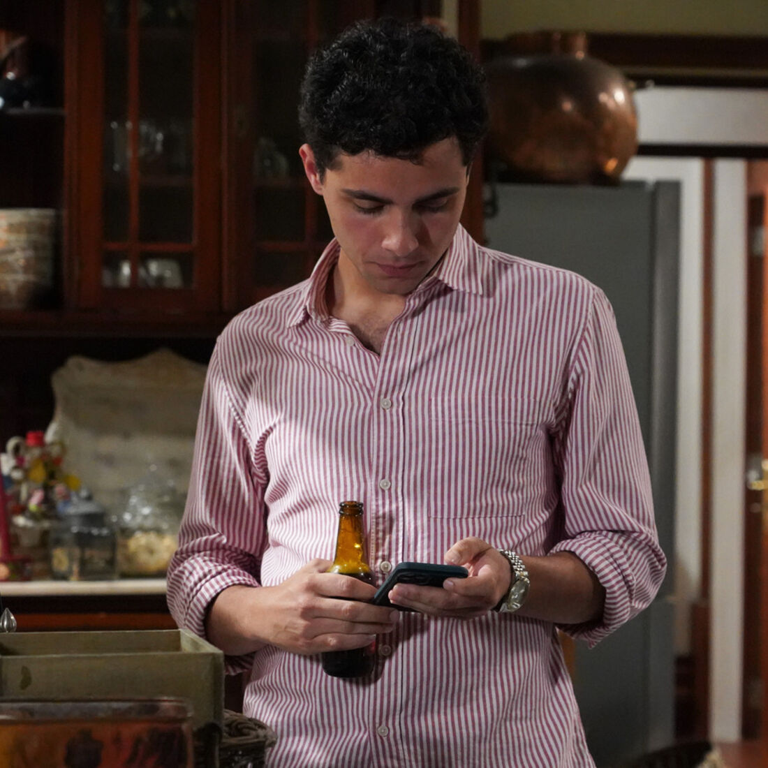 O rapaz está perturbado com o beijo de Vera, portanto decide enviar uma mensagem de áudio a Teresinha a pedir-lhe que dê notícias. Pilar olha para o filho, sentindo-se penalizada. Este fica desiludido ao ver que a mensagem que recebe é de Simão (Tiago Felizardo) e não de Teresinha, diz à mãe que vai jantar com o pai. Pilar fica com pena.
