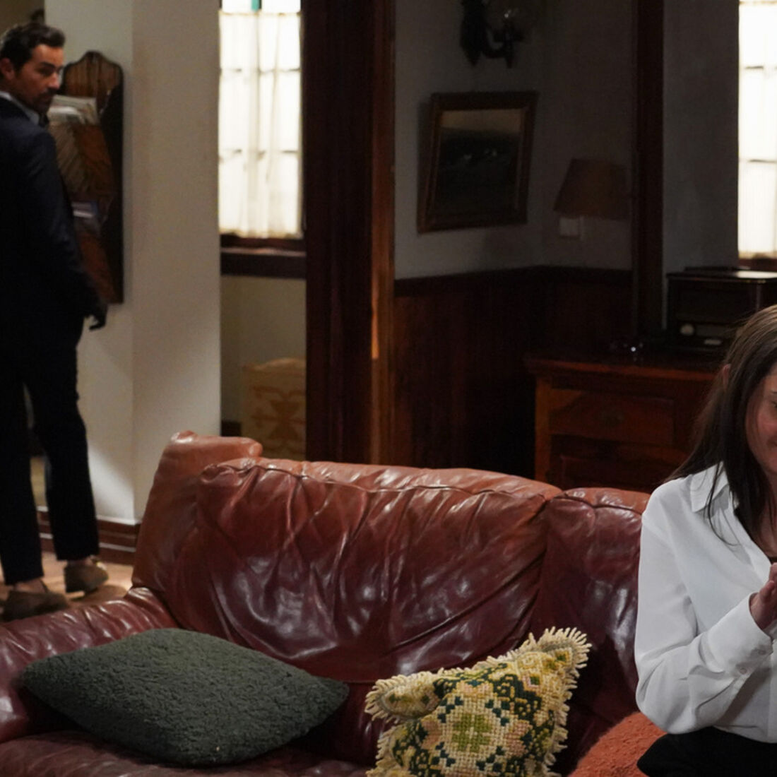 Sem que Sofia se aperceba, Vicente entra na cozinha e fica escondido à espera de a ver. Instantes depois, a empresária aparece e avança pela cozinha, sem dar por nada e prepara um chá. Sente-se incomodada com a pulseira eletrónica no tornozelo, dá-lhe comichão, mas não dá importância e segue para a sala.
