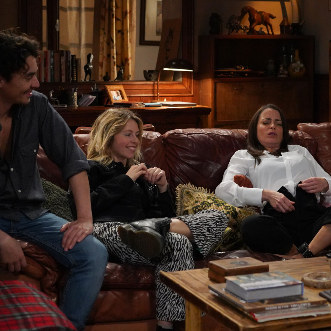 Por fim, perante Augusto (Fernando Luís), a empresária tenta disfarçar que está maldisposta. Conversam sobre Teresinha (Laura Dutra) e Augusto reconhece que foi excessivo com a rapariga por ter puxado demasiado por ela na carpintaria. Sofia aconselha-o a fazer as pazes com a afilhada.