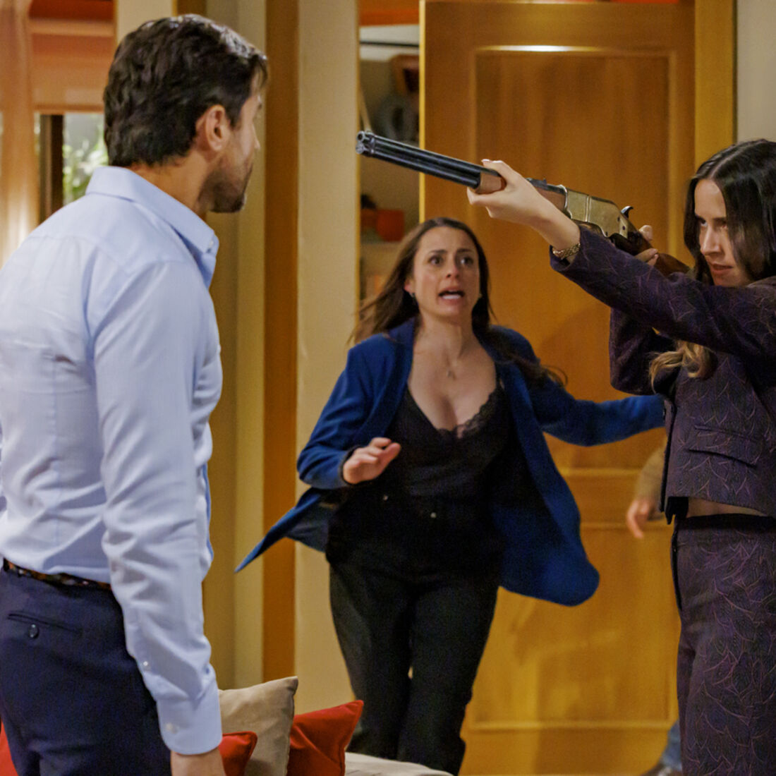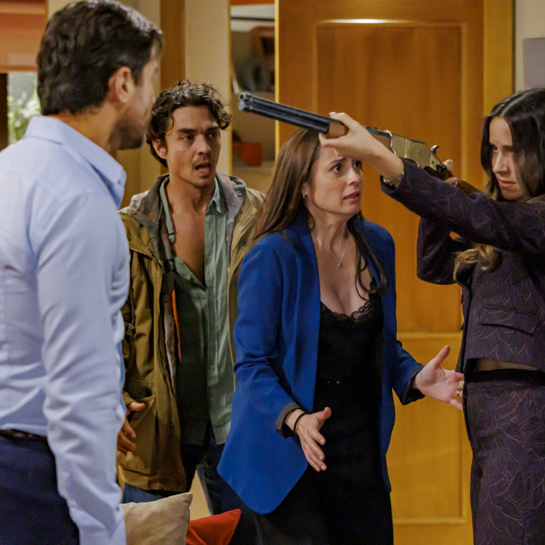Quando está prestes a premir o gatilho, Sofia (Patrícia Tavares) e Gonçalo (José Mata) aparecem e tentam impedi-la. A mecânica procura acalmar a irmã, quando Amanda aparece, dizendo que os seus homens estão prontos a entrar assim que ela indicar.