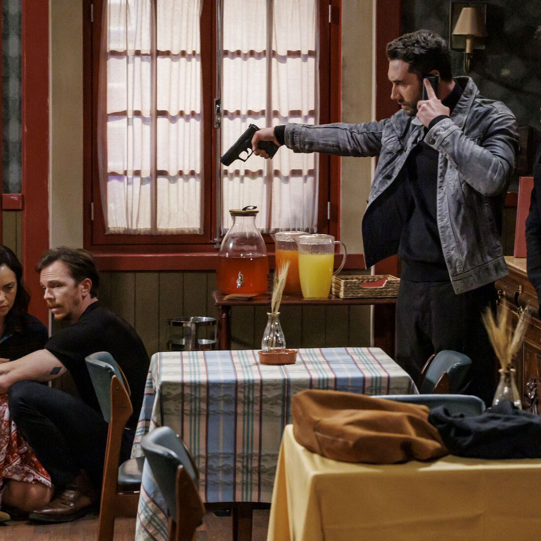 Entretanto, Clara (Sandra Barata Belo) chegou à cena do assalto, tenta falar com o assaltante no interior da residencial e deixa um telemóvel à porta para que consigam comunicar. O bandido apanha-o e aceita a chamada da inspetora, perguntando-lhe o que quer. No interior, Heitor pede a Marta que confie nele. Susana suplica para que levem o dinheiro e os deixem em paz. O malvado está furioso por a polícia ter aparecido, Heitor tenta dissuadi-los, Simão argumenta que Susana está grávida, mas não tem sucesso.