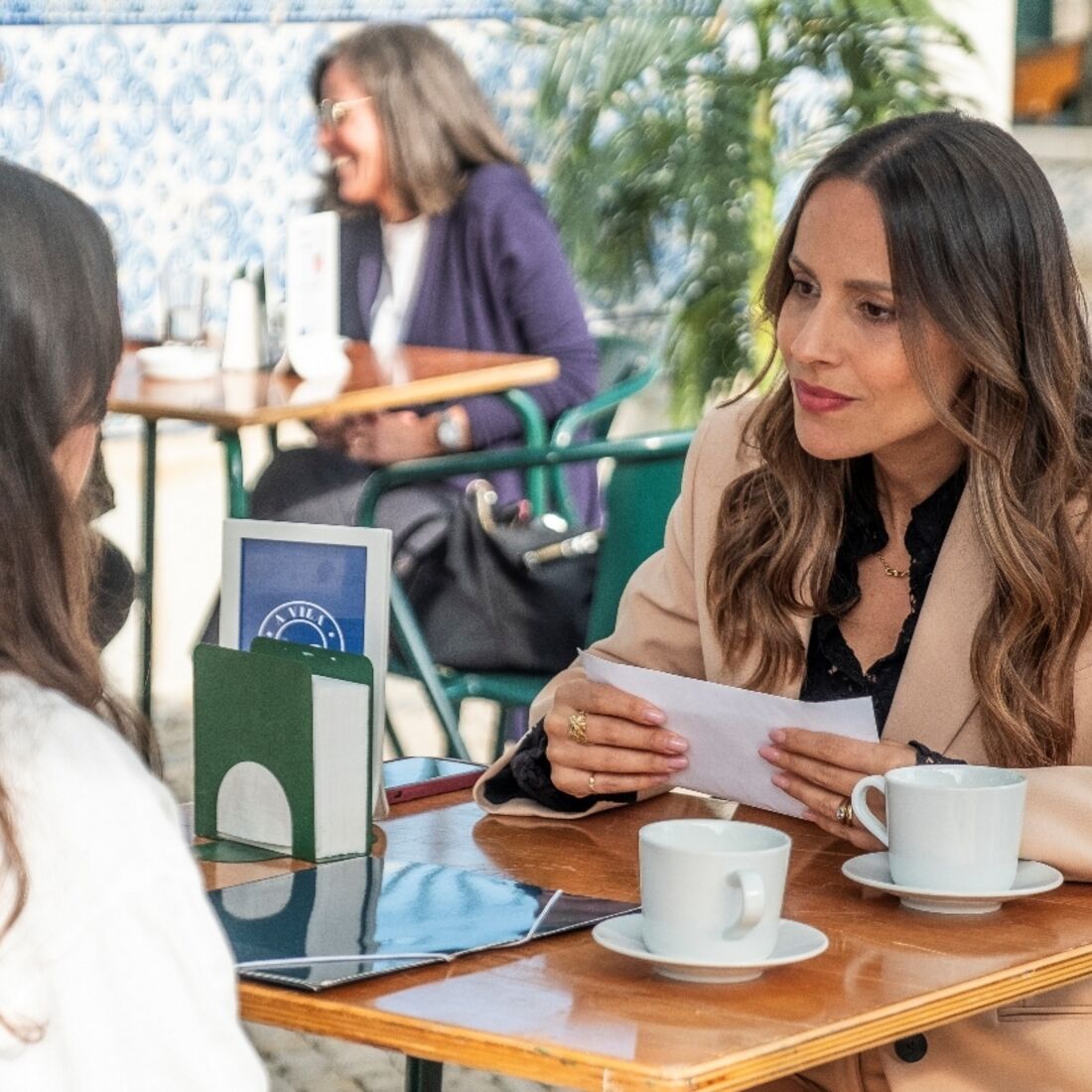 Sofia está pouco à vontade perante a câmara, mas vai mostrando a sala de controlo ao jornalista. De repente, Vicente (Ricardo Pereira) afasta-se, deixando-a nervosa por continuar a entrevista sem ele, mas prossegue a mostrar o gabinete ao jornalista. Este pergunta-lhe se já pensou em procurar pela filha de novo, ao que Sofia responde que trocaria a herança para poder tê-la a seu lado. Pilar ouve a entrevista a partir da escuta e fica tensa com a afirmação. Desliga a aplicação e faz uma chamada, determinada.