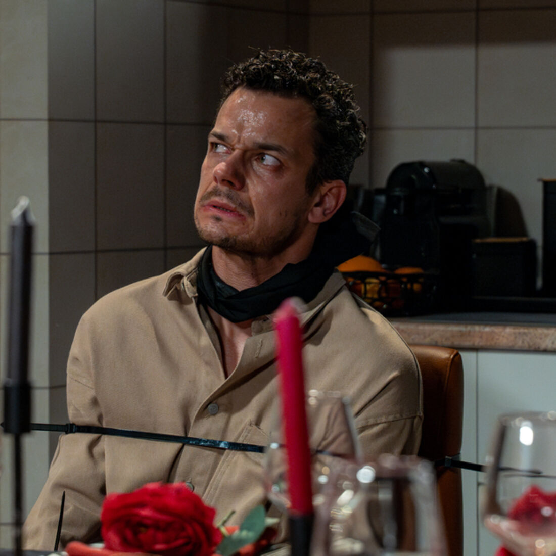 Enquanto isto, Pedro está preso e amordaçado na cozinha de Vicente. O vilão ouve os áudios de Mariana e responde-lhe por mensagem a fingir que a vítima teve um imprevisto. Mostra-se provocador e Pedro fica em pânico.