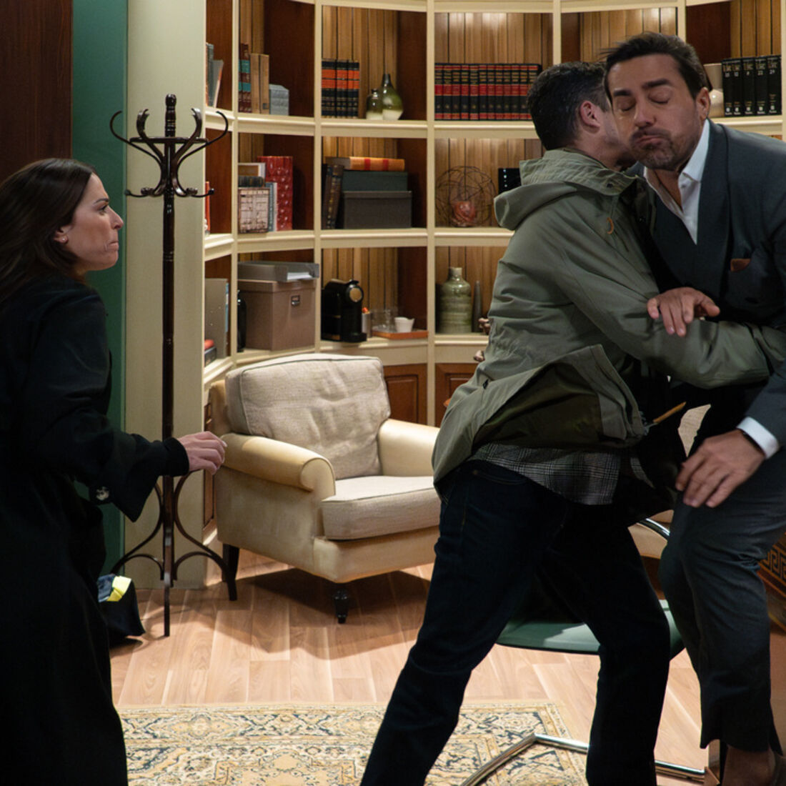 Horas depois, Beatriz (Bárbara Branco), Clara (Sandra Barata Belo) e Inês conversam em surdina no café. A mãe de Luís (Vicente Ramirez) diz-lhes que Pedro já está em casa, que Vicente fez o que prometeu. A inspetora responde que já colocou o falsificador da fábrica sob escuta e que a quer apanhar antes que saia do país. Inês receia a reação de Vicente, Beatriz tranquiliza-a em como continuam juntas até ao fim. Diz que só contará a Sofia (Patrícia Tavares) que está do seu lado quando tiver coragem, espera que a mãe a perdoe.