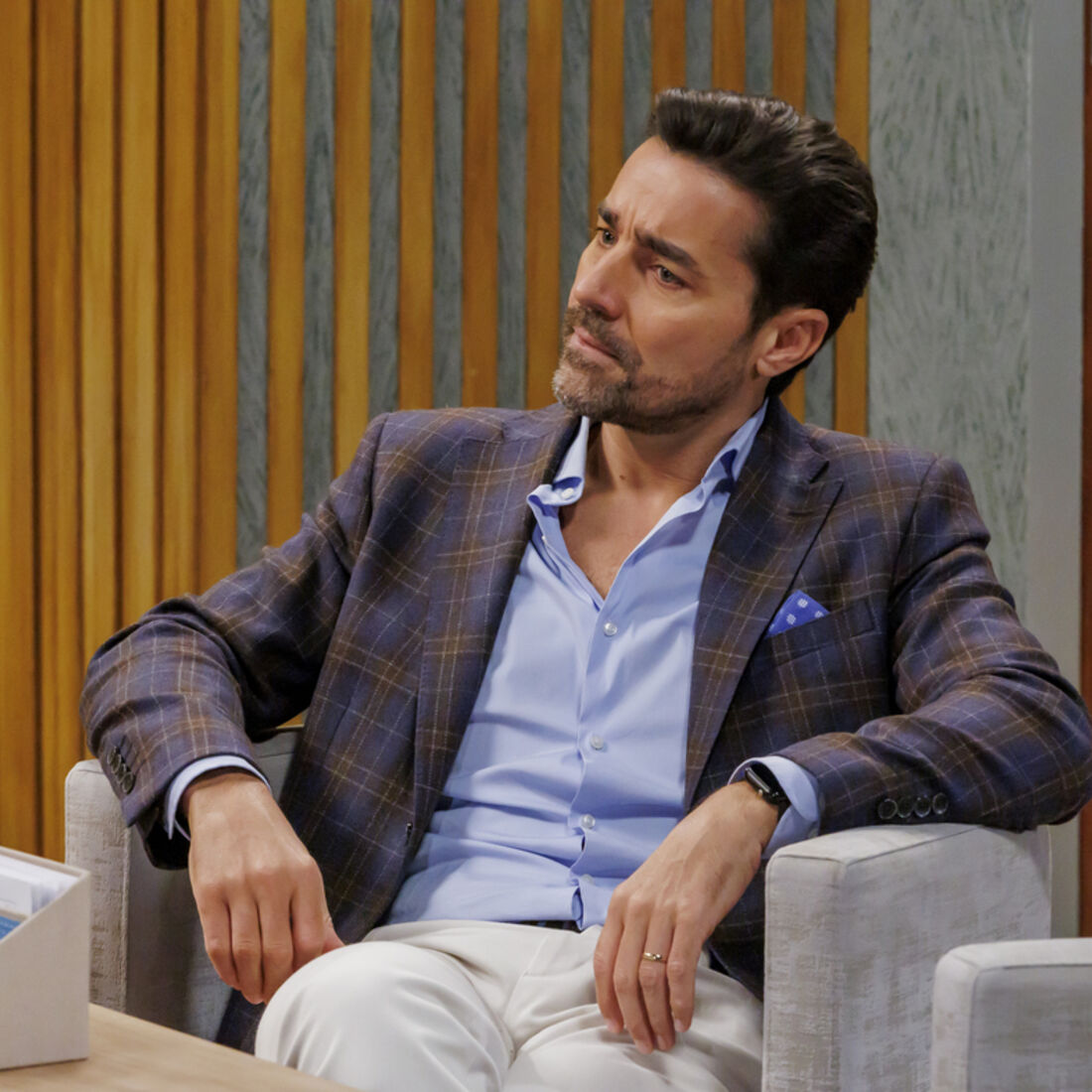 Em choque, o filho de Amélia (Ana Bustorf) tenta argumentar em como Sofia e Pilar não têm motivos para o despedir, mas a ex-mulher mostra-se sonsa e diz que o advogado falará com ele, acrescentando que não tem sido competente nas suas funções na fábrica, que não mantêm horários e cria conflitos com outros trabalhadores. Pilar corrobora a versão de Sofia. Vicente sai, transtornado, as irmãs Novais mostram-se cúmplices.