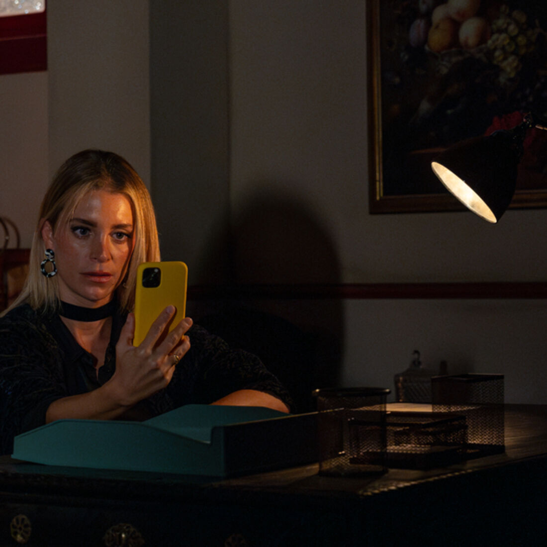 Enquanto isto, Vera (Rita Bretão), deitada na sua cama improvisada na sala de reuniões, levanta-se para ir até à casa de banho. Sai sem levar o telemóvel. No gabinete de secretariado, Vicente acede ao sistema informático. Vera vê-o e fica a espreitar sem fazer barulho. O bandido não repara que está a ser observado e troca os relatórios financeiros sobre o negócio com “Emília”. Vera fica muito aflita, não sabe se foi vista. Hesita sobre se deve ou não avisar Bernardo (Rui Pedro Silva), mas desiste e volta a deitar-se encolhida.
