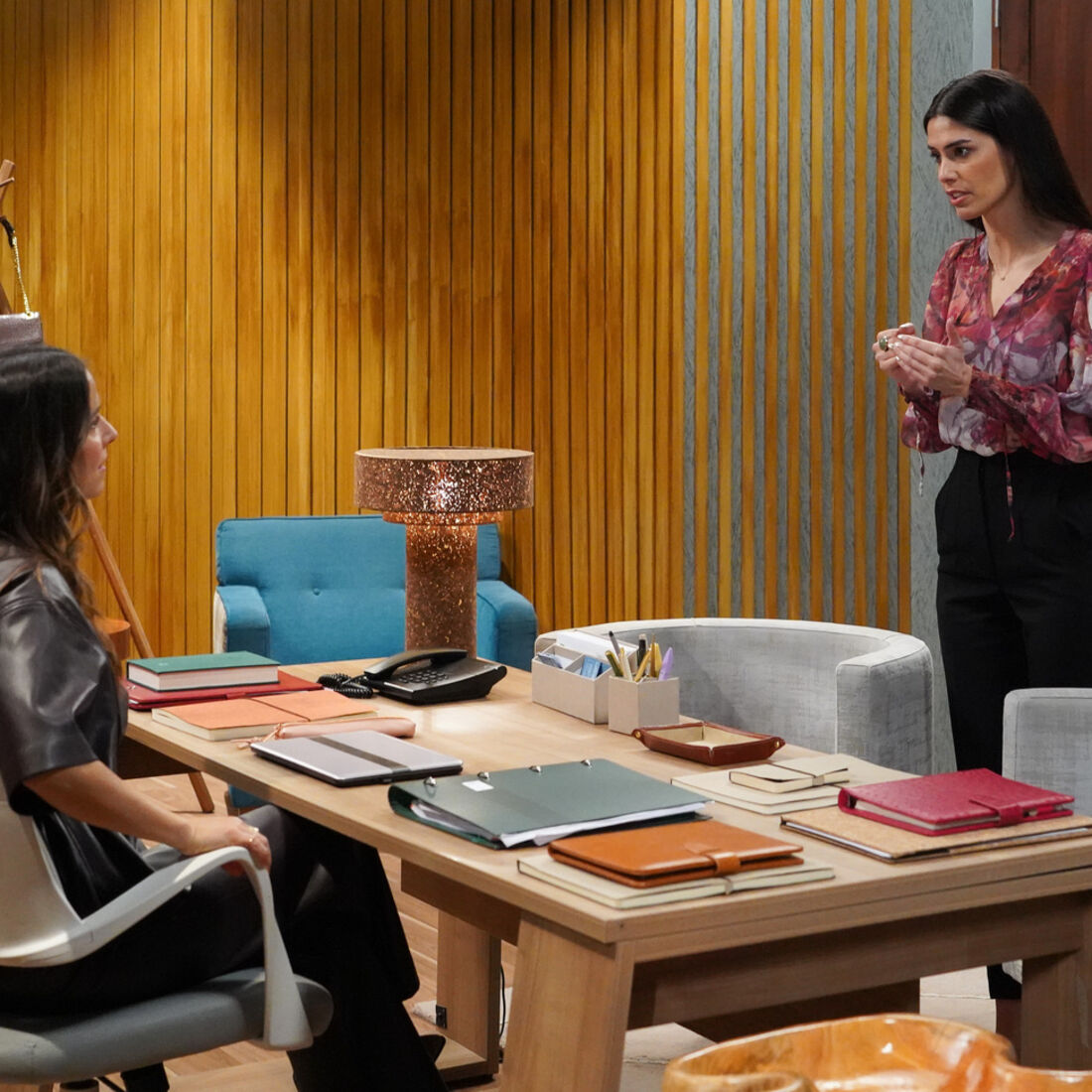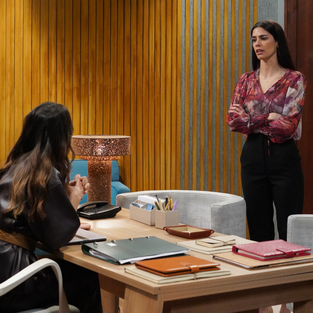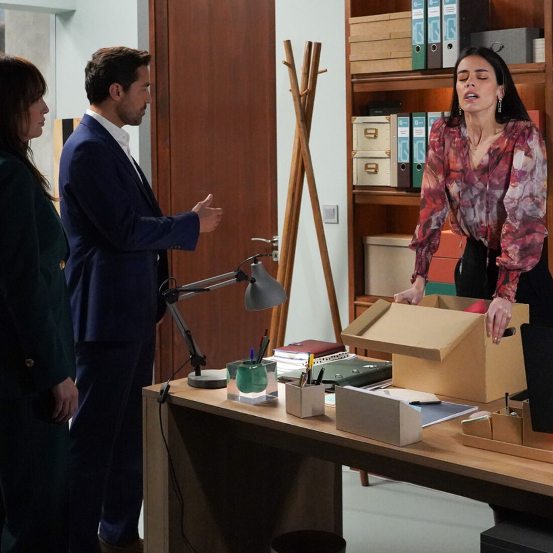 Entretanto, na fábrica, Pilar despede Cláudia, pede-lhe que limpe a secretária, não a quer na empresa. A secretária fica chocada e implora a Pilar para manter o trabalho na empresa, alegando que Brígida lhe deu garantias, mas a Novais declara que não a quer na empresa. Cláudia promete que o assunto não vai ficar assim e sai.