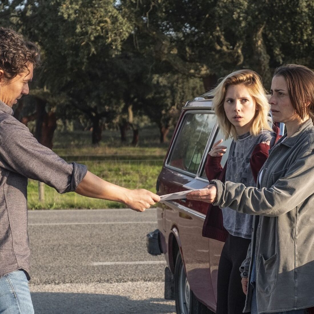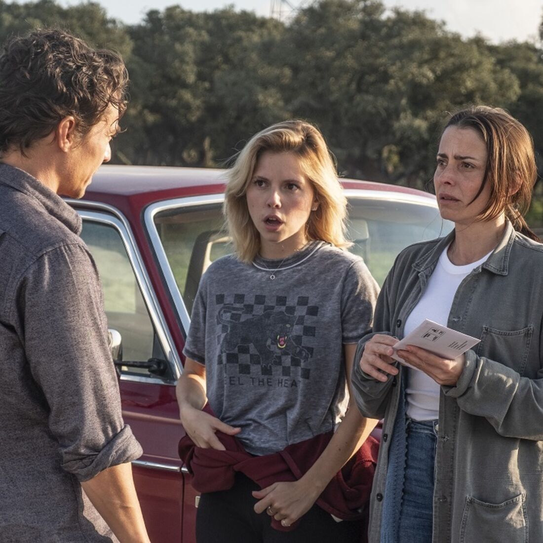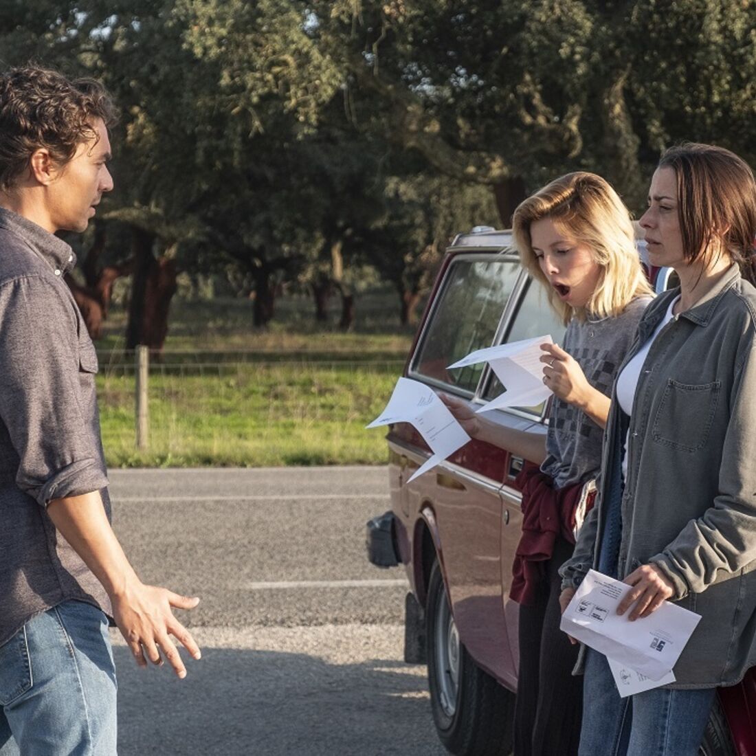 Enquanto isto, no carro, Sofia recebe uma chamada de Clara (Sandra Barata Belo), que questiona quando é que Teresinha (Laura Dutra) irá buscar a chaves. A mecânica fica preocupada por a afilhada não ter aparecido na esquadra, encosta o carro à berma, até que ouve a voz de Teresinha vinda do banco detrás. A afilhada apresenta-se, diz que estava tapada com um cobertor e garante que a vai ajudar no Algarve.
