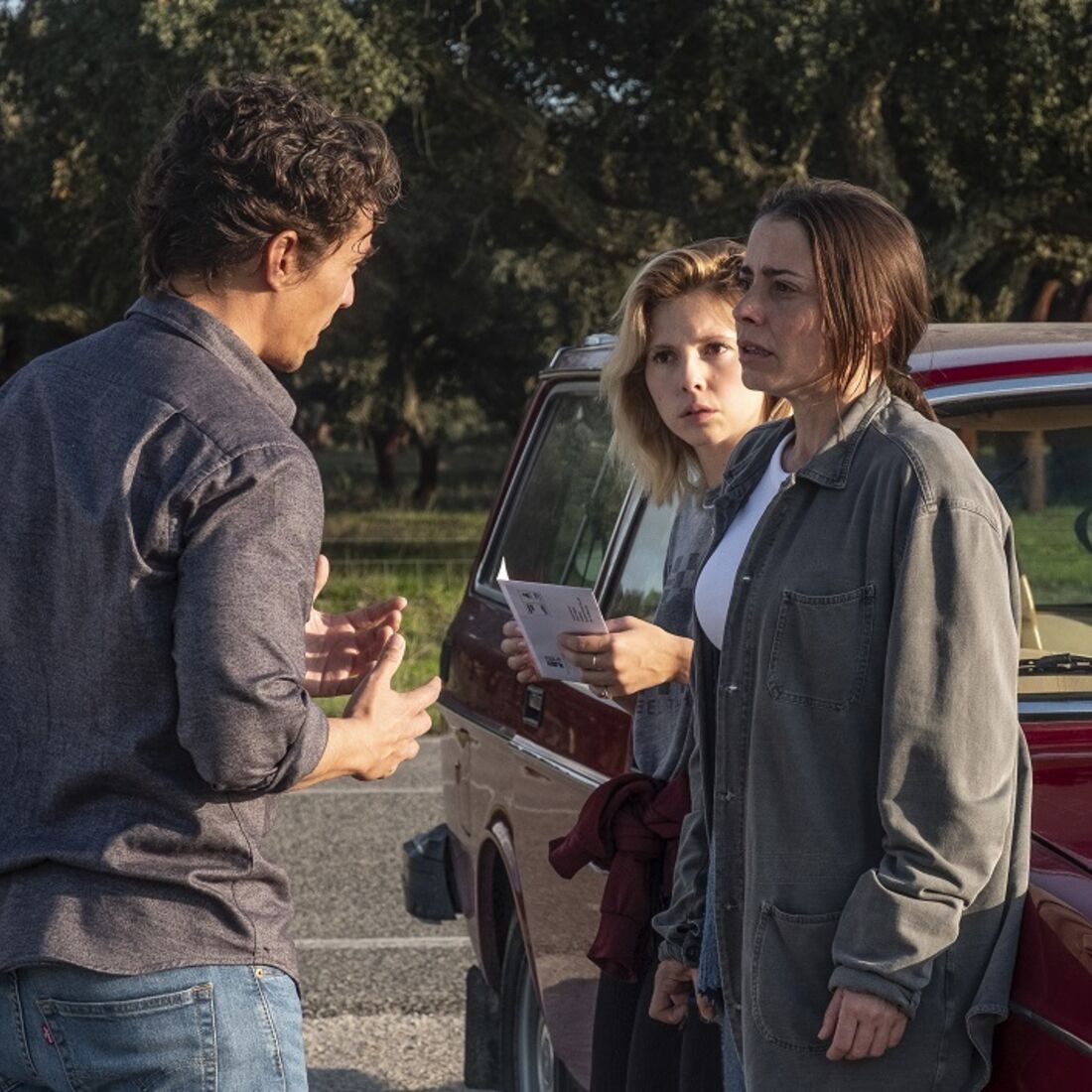 Irritada, Sofia ordena que ela regresse a Ribeira Fria, discutem o assunto, quando Gonçalo vê o carro parado na estrada e se aproxima. As duas saem do veículo, mas Sofia tem pressa em seguir caminho. O rapaz segura-lhe no braço e diz-lhe que não precisa de ir para a apanha da fruta nem de se preocupar com dívidas, uma vez que Raul é seu pai e deixou-lhe a fábrica de papel, logo, está milionária. A mecânica fica em choque e confusa com o que ouve.