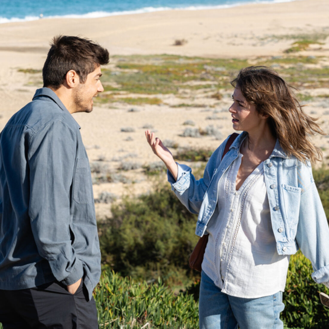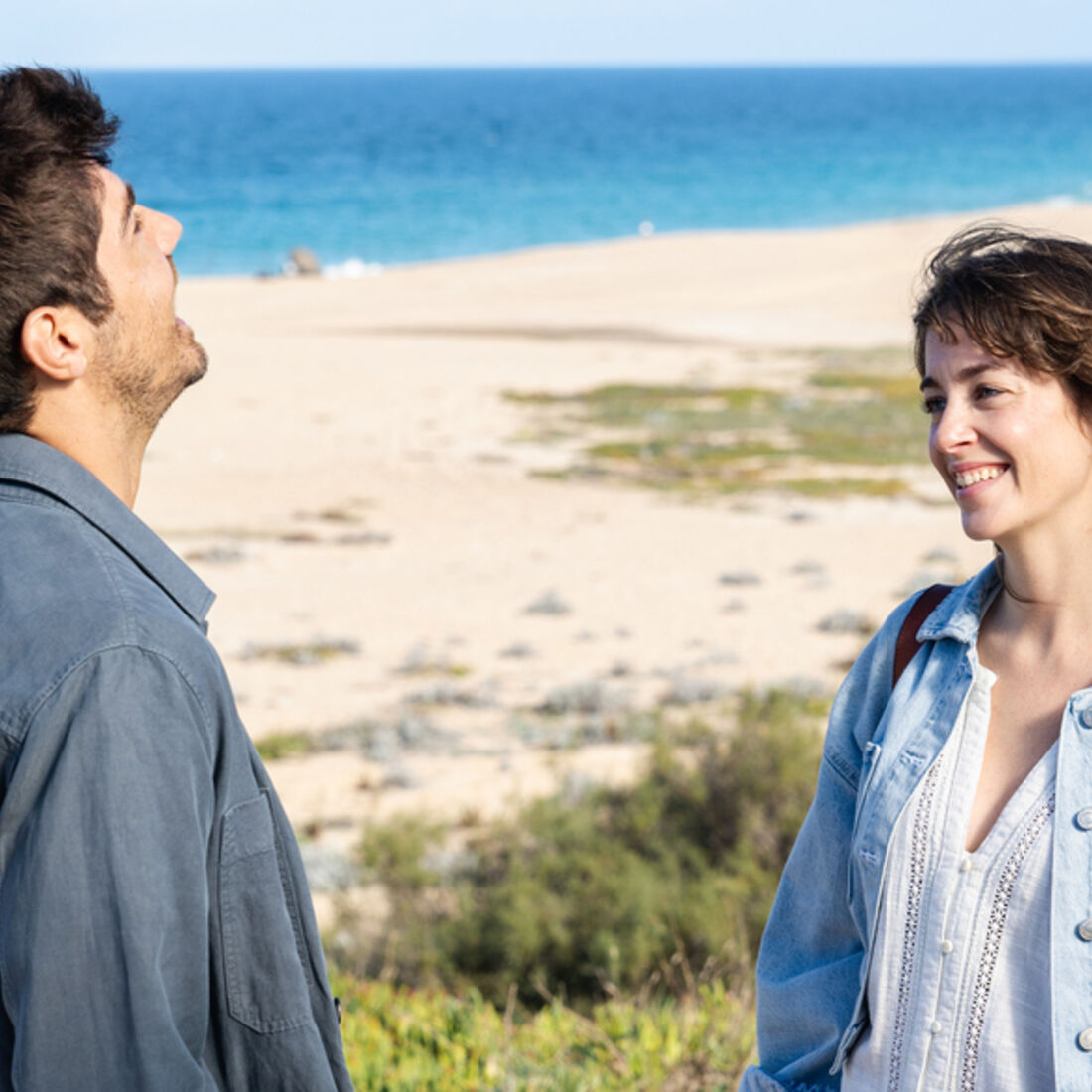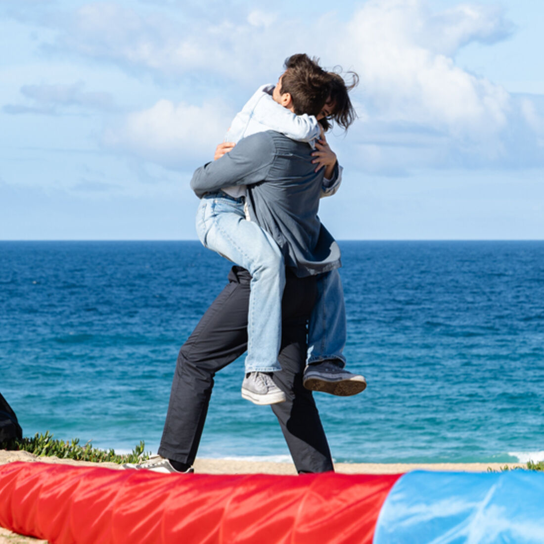 Em seguida, a enfermeira chega à praia e não vê a amiga. De repente, o namorado aparece, diz que Raquel não vem e convida-a para andar de parapente. Laura sorri, fascinada.