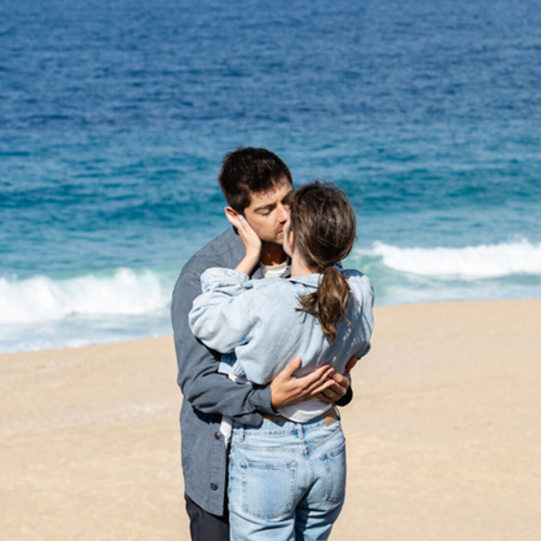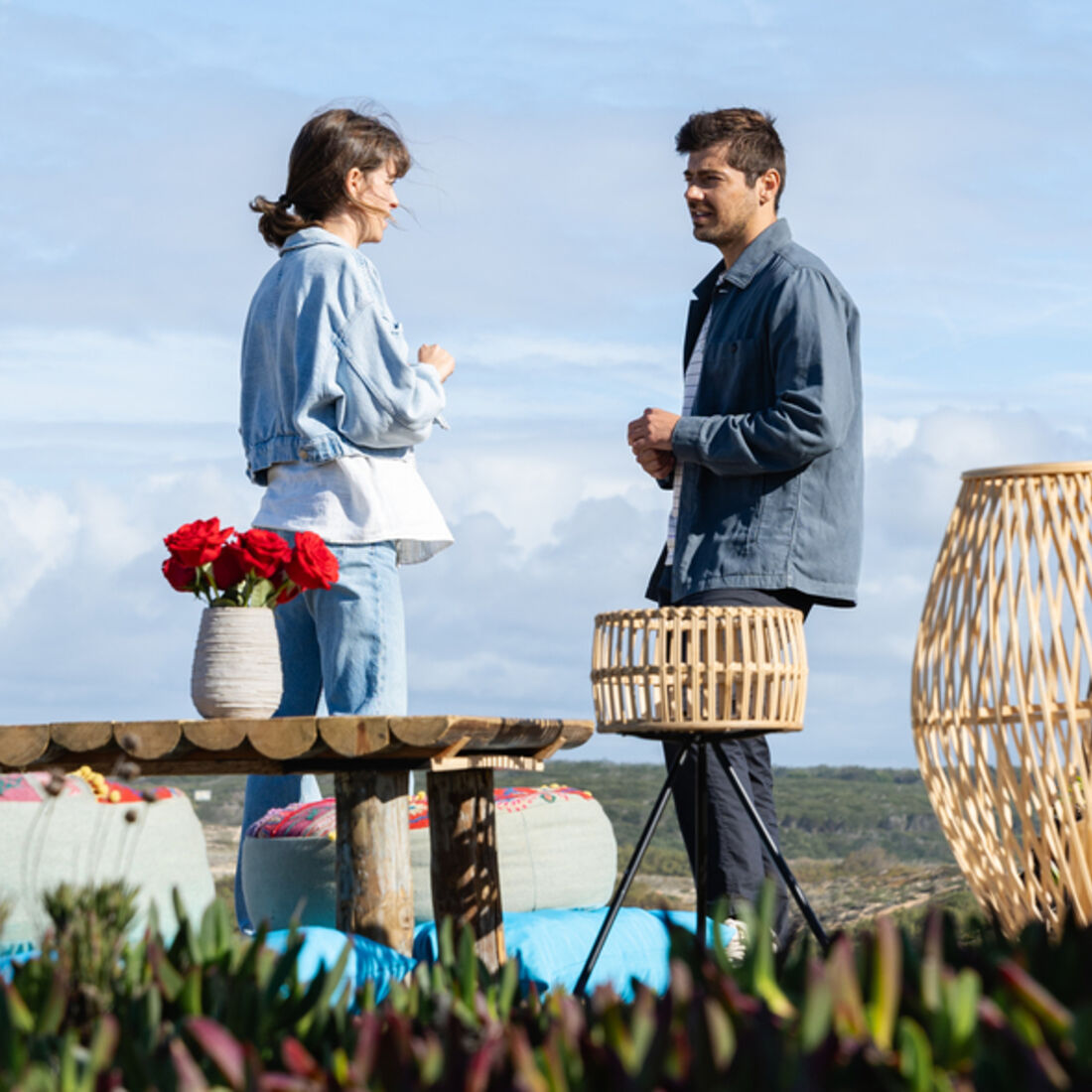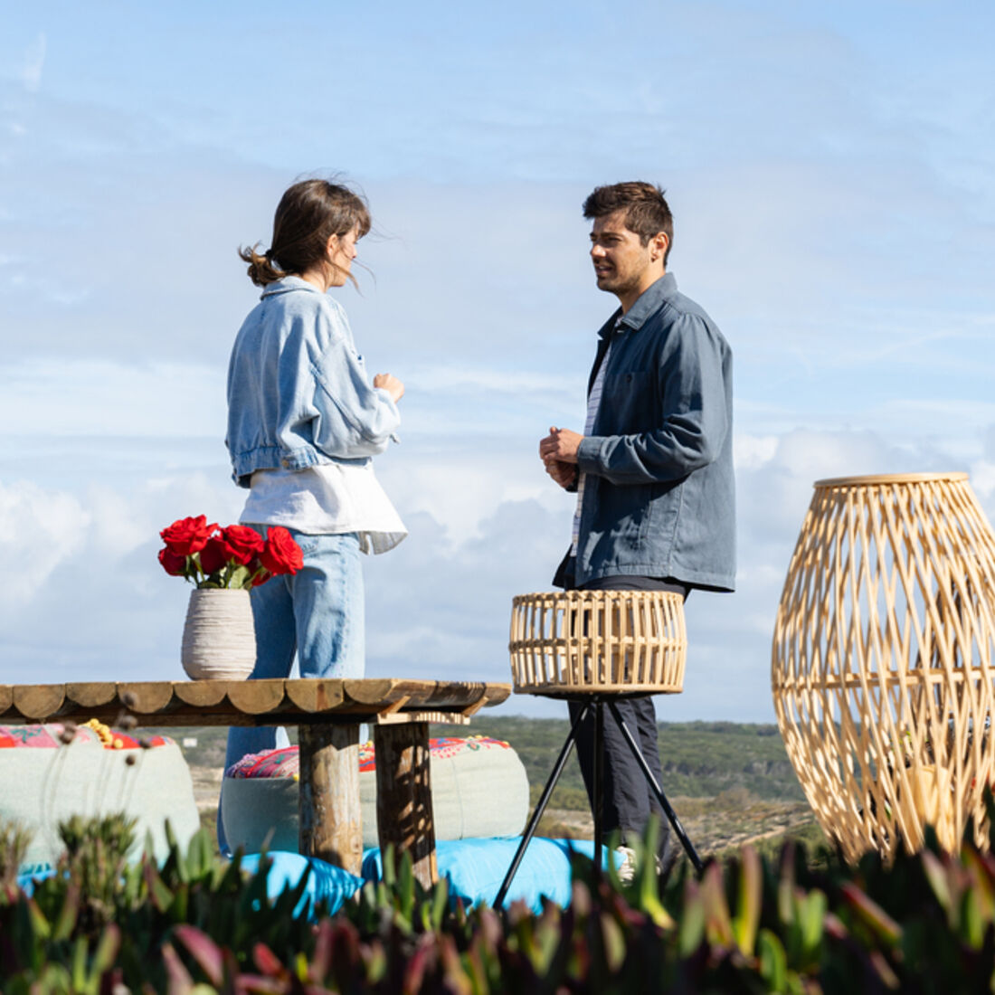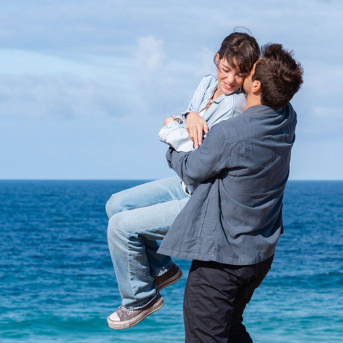 O casalinho sobrevoa a praia. Tomás aponta para o areal, onde está scrito “Laura casas comigo?” e Laura grita que sim.