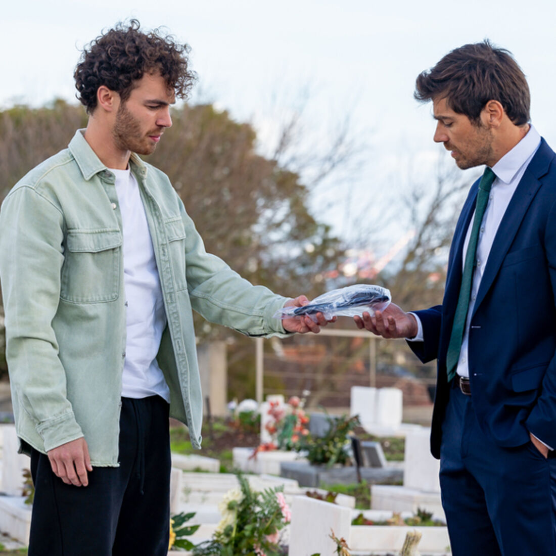 Os dois vão ao cemitério e visitam a campa de Nanda (Madalena Almeida), onde também está referida a “morte” da filha. Ricardo defende que a irmã não quereria que Leo ficasse longe da vida do filho e entrega-lhe a escova de cabelo do sobrinho para que possa fazer um teste de ADN. Leo fica surpreendido e agredece-lhe, reiterando que não quer fazer nada de mal ao menino.