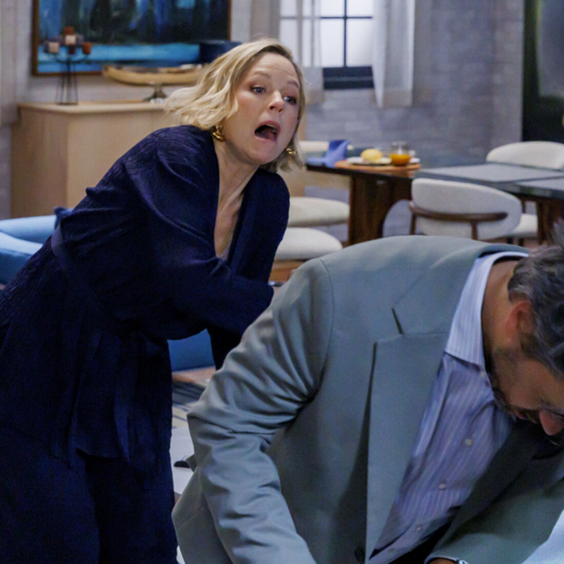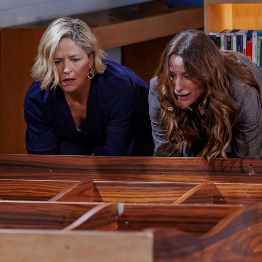 Em seguida, Marta entra no apartamento da irmã e fica em choque ao encontrar Belmiro imóvel e inconsciente. Consegue arrastar a estante e apressa-se a chamar uma ambulância. Verónica chega, ajoelha-se ao lado do marido fingindo pânico. Belmiro tenta contar o que se passou, mas para de respirar e acaba por morrer. Verónica grita em como a estante não era segura e mostra-se devastada sem saber o que fazer. Marta consola a irmã.