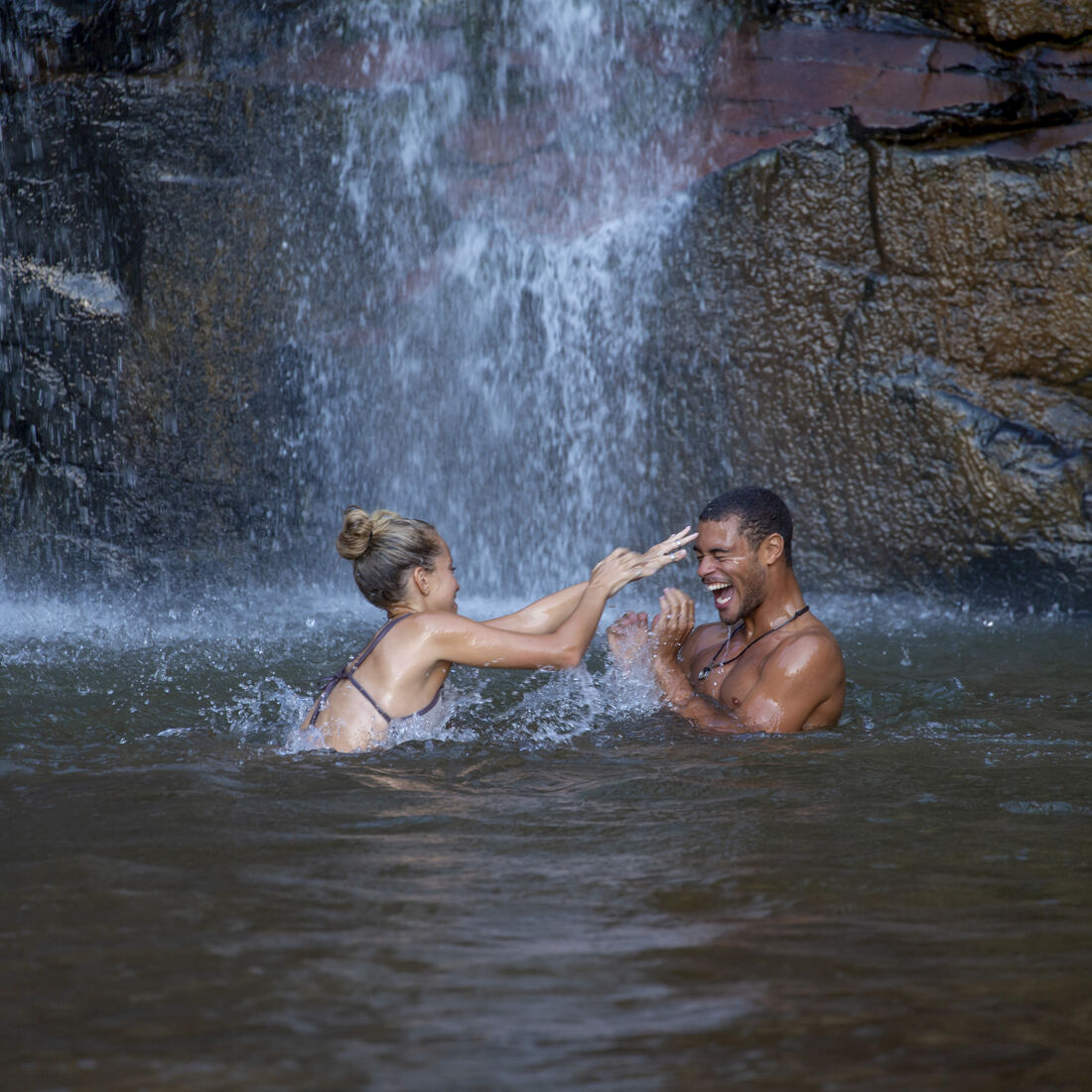 Ao chegar à fazenda, a rapariga fica chocada com toda a grandiosidade daquele local. Joel fica de imediato interessado na visitante e convida-a para um passeio. De repente, o jipe para sem combustível e o guia pede-lhe que fique ali enquanto ele vai procurar uma solução. Instantes depois, Talu cruza-se com o veículo e oferece-lhe boleia. Mas, antes de a levar embora, passeiam por uma cachoeira e acabam por viver um momento de grande cumplicidade. Nesse instante, nasce uma grande paixão.