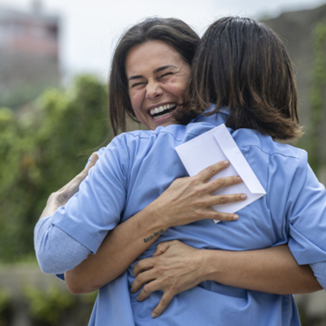 Enquanto isto, no pátio da prisão, uma guarda distribuí a correspondência. Vitória fica emocionada ao perceber que tem uma carta de Francisco, que lhe diz que decidiu escrever-lhe apesar de não ter recebido nenhuma carta dela. No documento, o menino revela que Afonso não chora desde que lhe cresceu a barba, acrescentando que os avós não os deixam ir visitá-la e querem que a tia ocupe o lugar dela. Em choque, Vitória levanta-se e vai para a fila para a cabine telefónica, até que chega a sua vez. Vitória implora a Carolina para que a deixe falar com os filhos mas esta diz-lhe que eles saíram com Margarida.