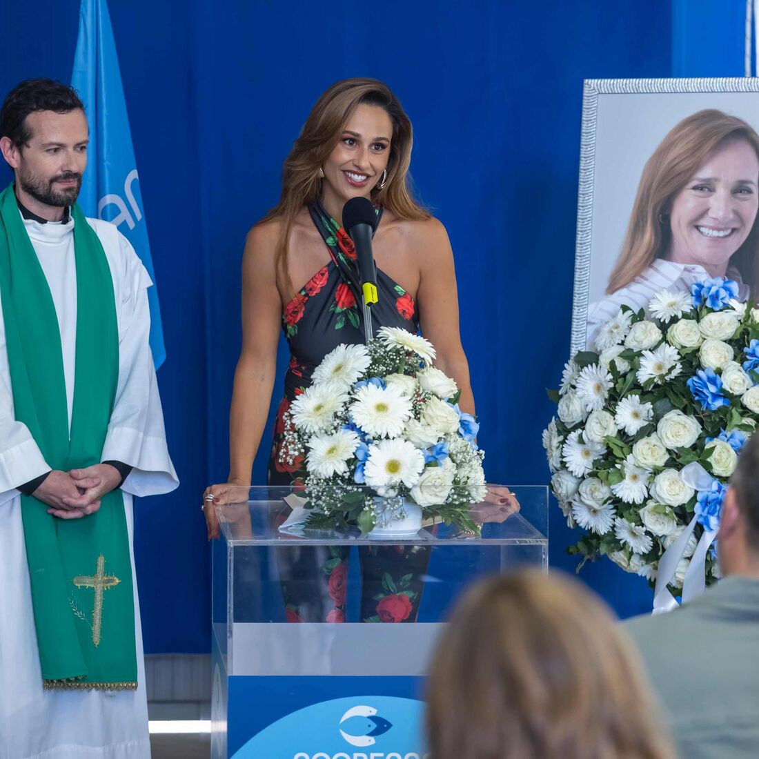 No púlpito, a mãe de Rosinha (Francisca Salgado) afirma que todos devem ter fé de que Vivi possa estar viva, recordando o seu próprio caso de ter estado tanto tempo desaparecida. Flor chama Sammy para discursar, explicando que ele e a sua família são afinal os donos da Açoreana.