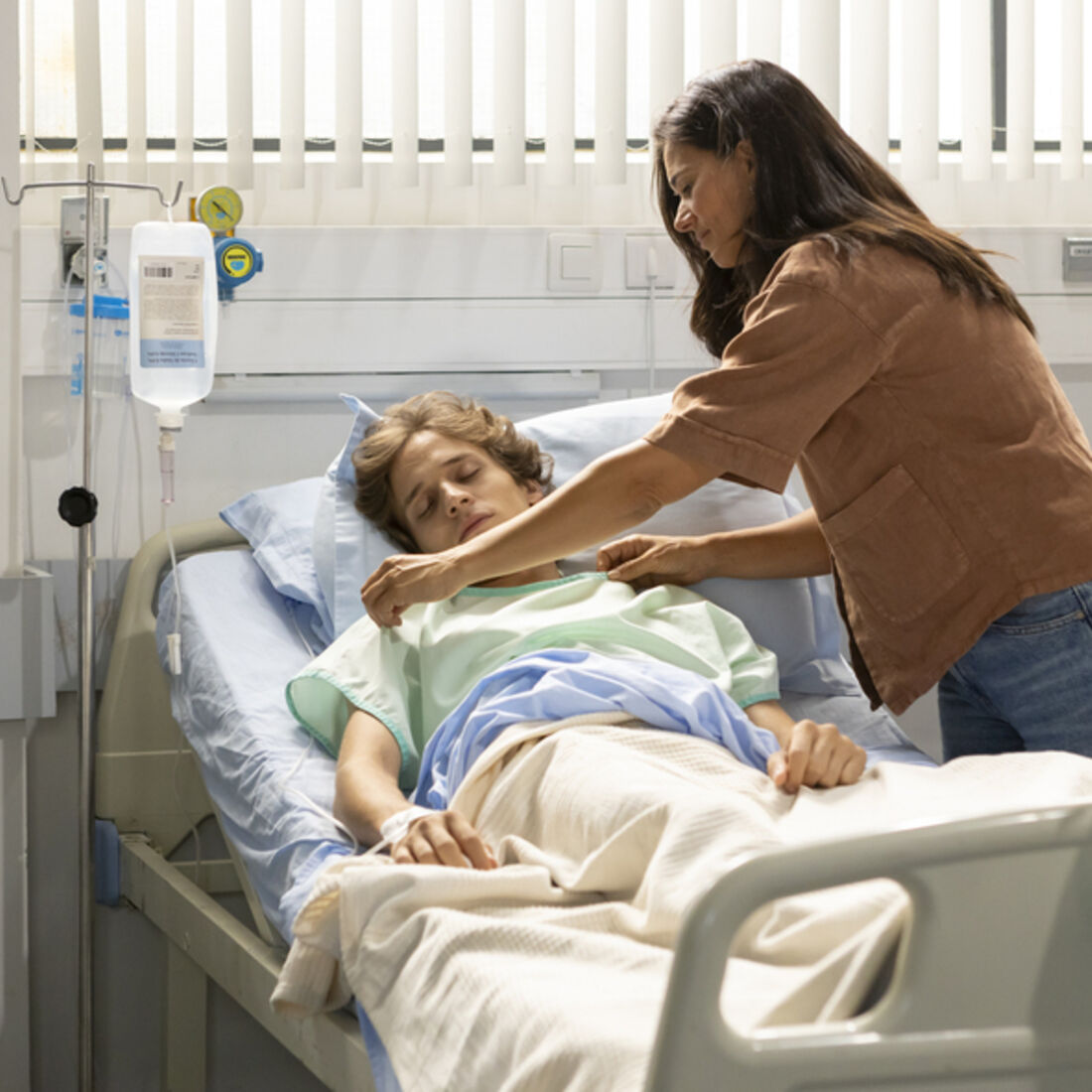 No dia seguinte, Vitória e os filhos entram no quarto. O mais novo corre de imediato a abraçar o irmão, mostrando-se muito feliz por ele estar vivo e bem. Também a gémea se emociona e mostra-lhe umas bolachas que levou contra a vontade da mãe.
