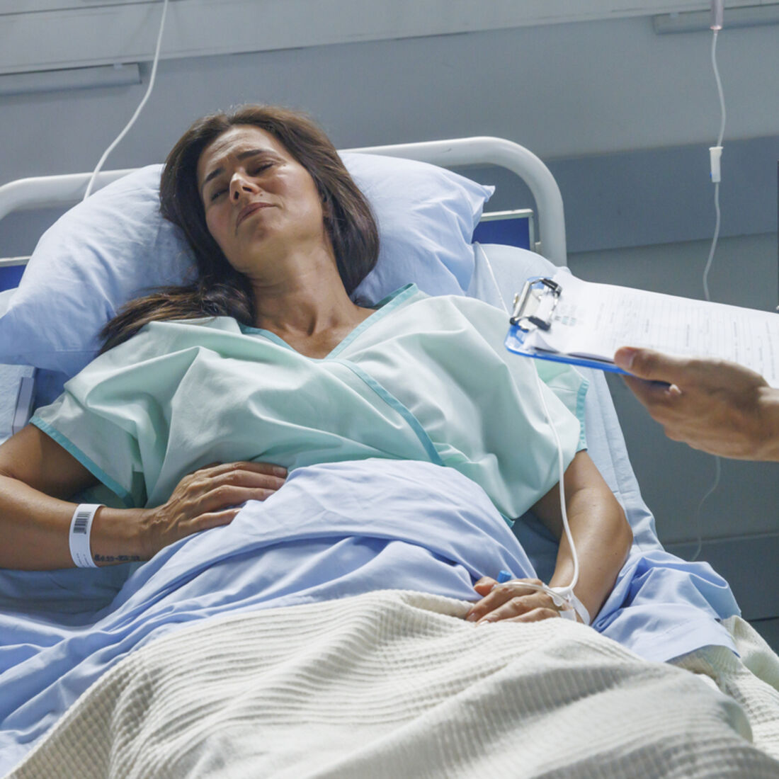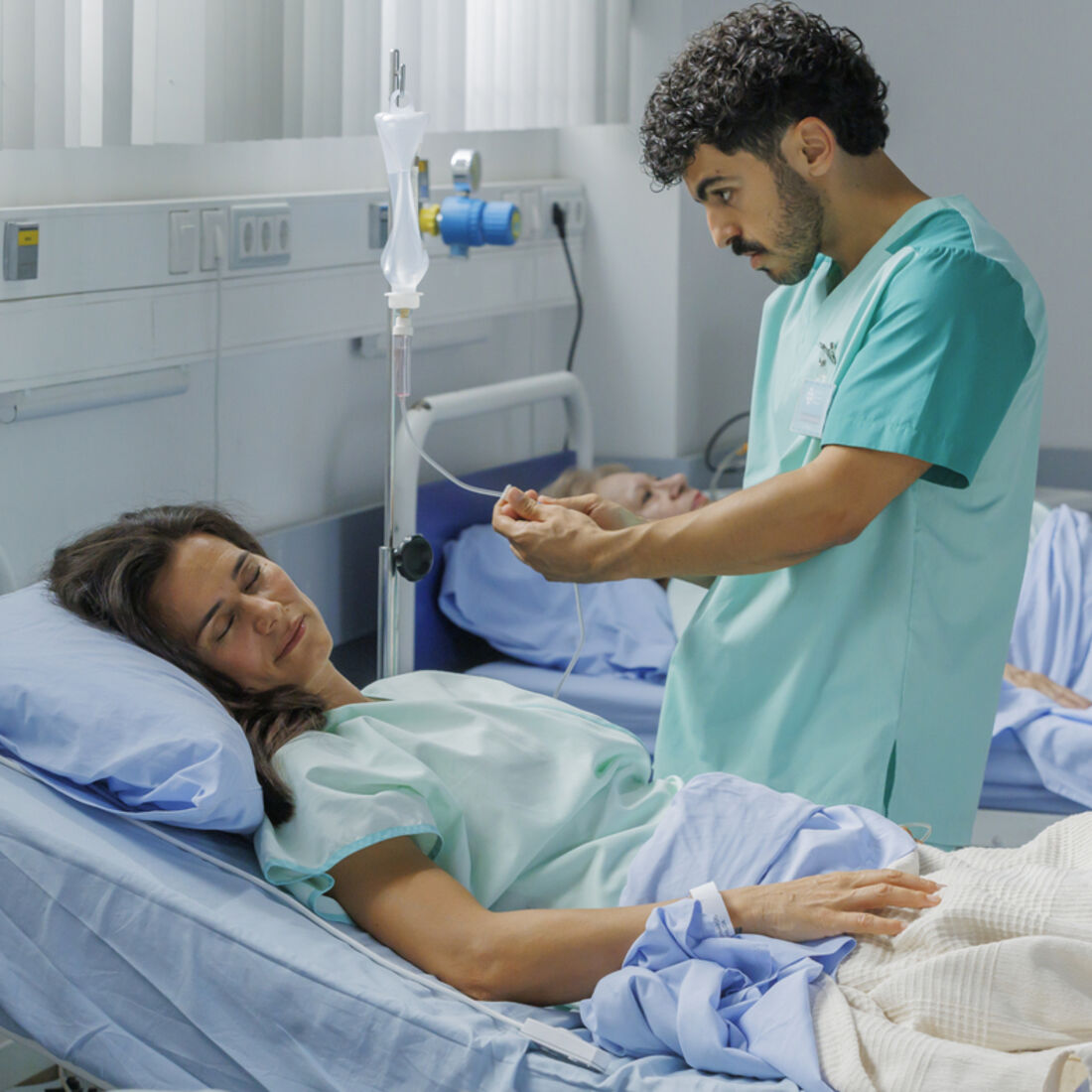 Novelas Vitória. Maldade sem fim: Manuel empurra Vitória pelas escadas e atira-a para uma cama de hospital