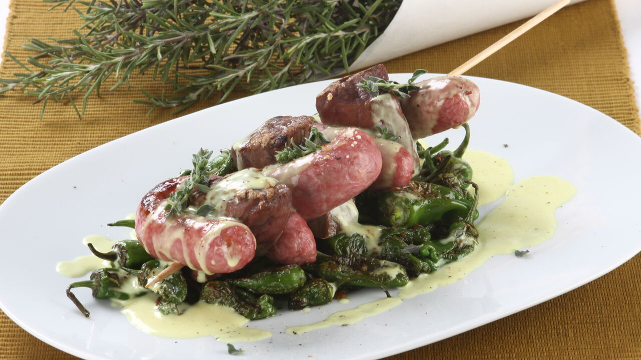 Receitas Uma apetitosa espetada de Novilho com Salsichas