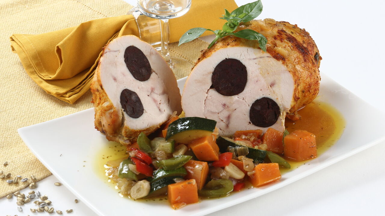 Receitas Sem ideias para as refeições de hoje? Experimente este Lombo de Peru com Morcela