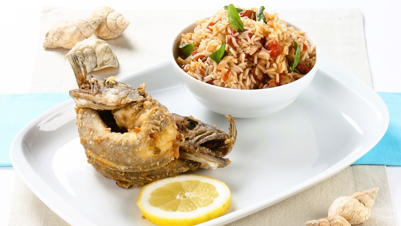 Receitas Uma bela Pescadinha de Rabo na Boca com Arroz de Tomate