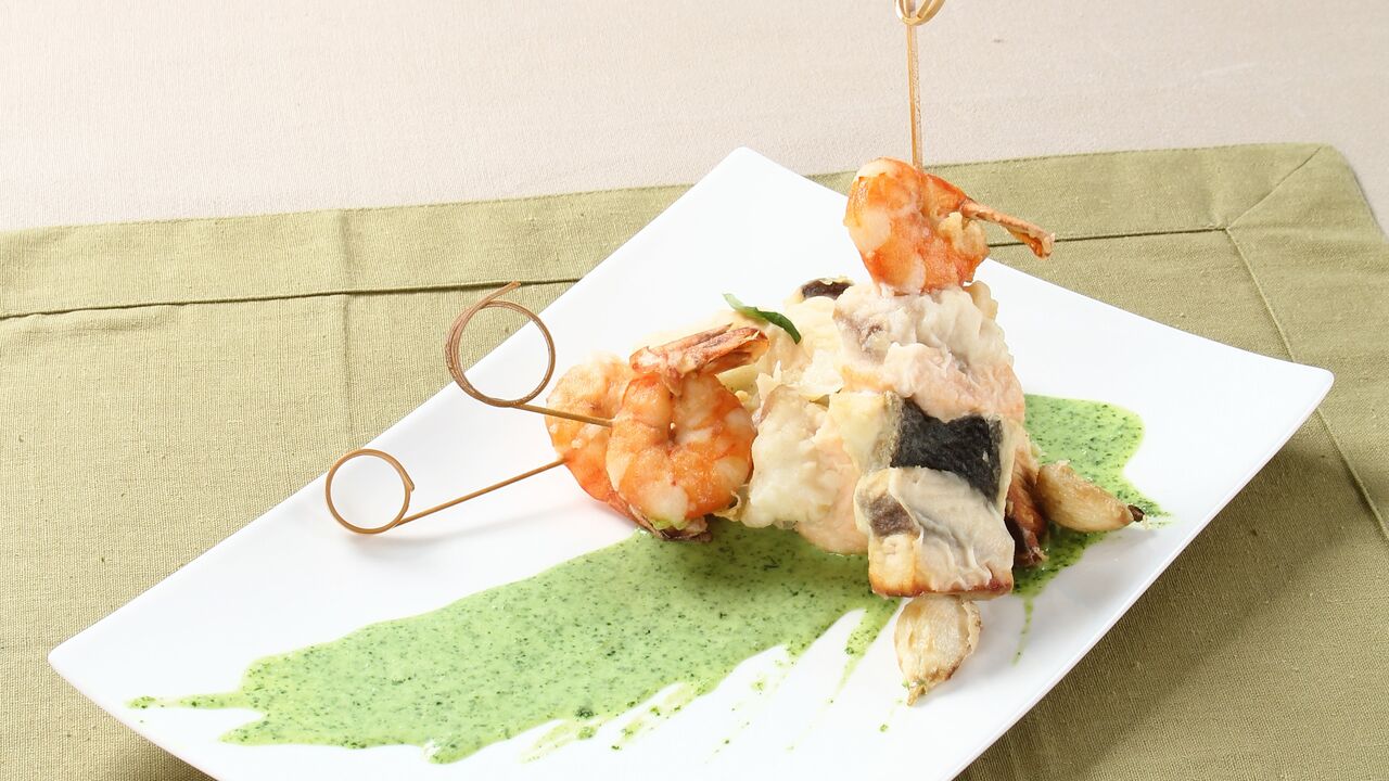 Receitas Umas simples Espetadas de Peixe e Marisco